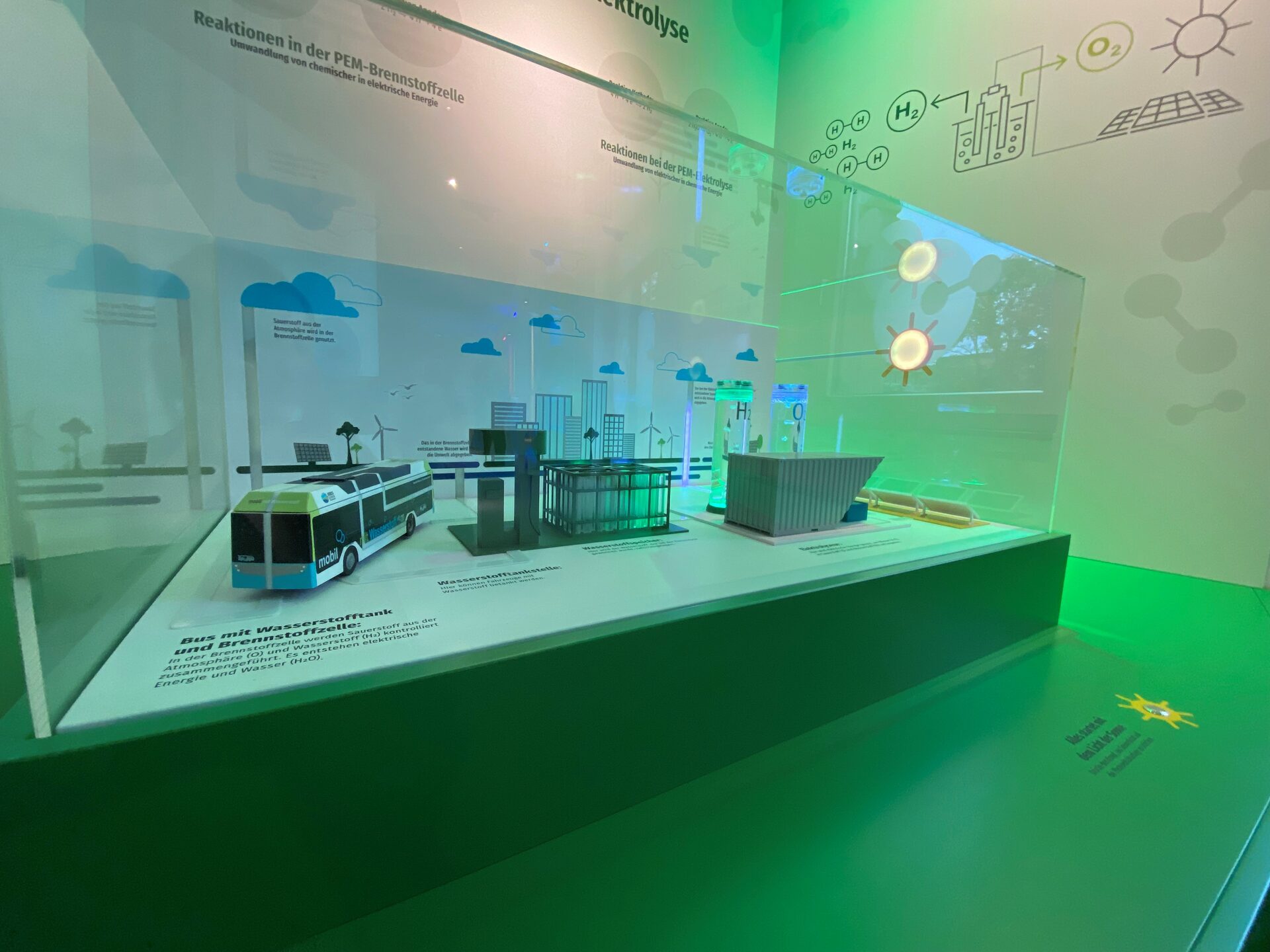 Mit der neuen interaktiven Dauerausstellung nimmt der Kreis Düren die Besucherinnen und Besucher mit auf eine Reise durch die Welt des Wasserstoffs (H2). Verständlich, abwechslungsreich und vor allem aus lokaler Sicht wird dieses für den Kreis Düren wichtige Zukunftsthema erklärt.