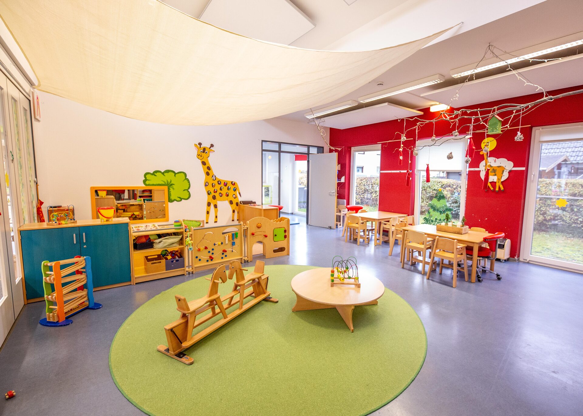 Die Giraffengruppe ist unsere Nestgruppe. Hier können Kinder ab 4 Monaten bis zum 3. Lebensjahr gemeinsam spielen und lernen.