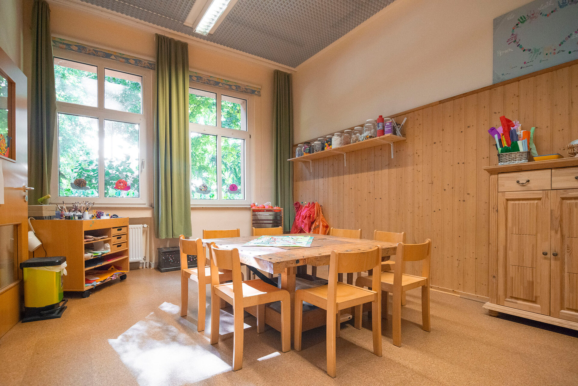 Die Kindertageseinrichtung bietet zwei Gruppenräume mit verschiedenen Funktionsräumen, Erlebnis- und Bewegungsräume, Kreativwerkstatt/Atelier/Forscherlabor, Sinnesräume, Rollenspielbereiche inkl. Bühne, Leseecke, Bauraum und Kuschelecke. Alle Funktionsräume sind liebevoll eingerichtet, vermitteln Geborgenheit und regen die Kinder zur Selbständigkeit und Eigenständigkeit an.