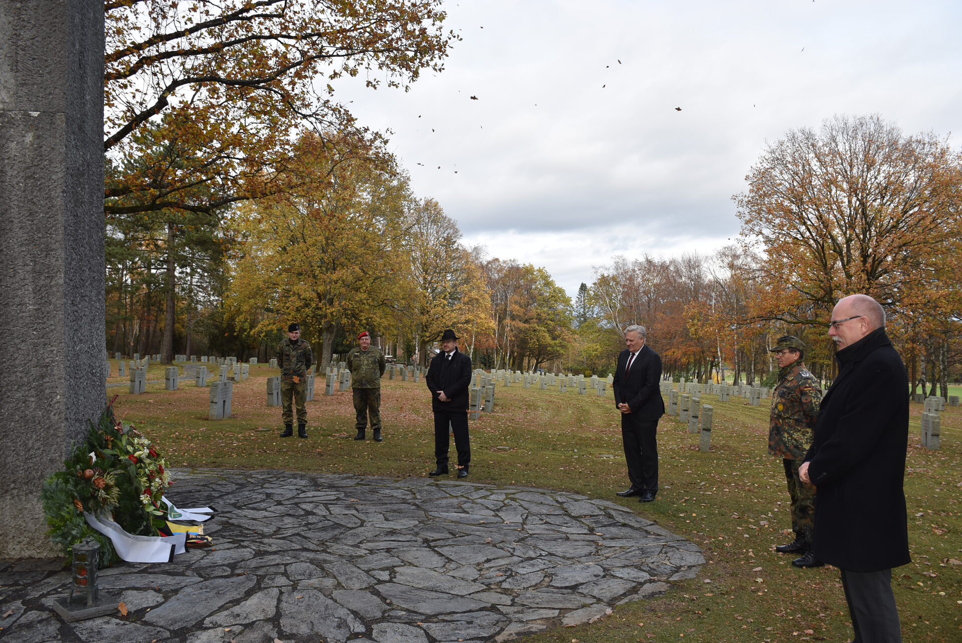 Landrat Wolfgang Spelthahn, Vorsitzender des Kreisverbandes im Volksbund Deutsche Kriegsgräberfürsorge (VDK), sein Stellvertreter Peter Kaptain, Hürtgenwalds Bürgermeister Andreas Claßen und Oberstleutnant i.R. Thomas Roßbroich als Leiter des Kreisverbin-dungskommandos Düren legten auf dem Ehrenfriedhof in Hürtgen vier Kränze nieder. Sie verneigten sich und gedachten schweigend der Opfer von Krieg, Gewalt und Vertreibung in aller Welt.