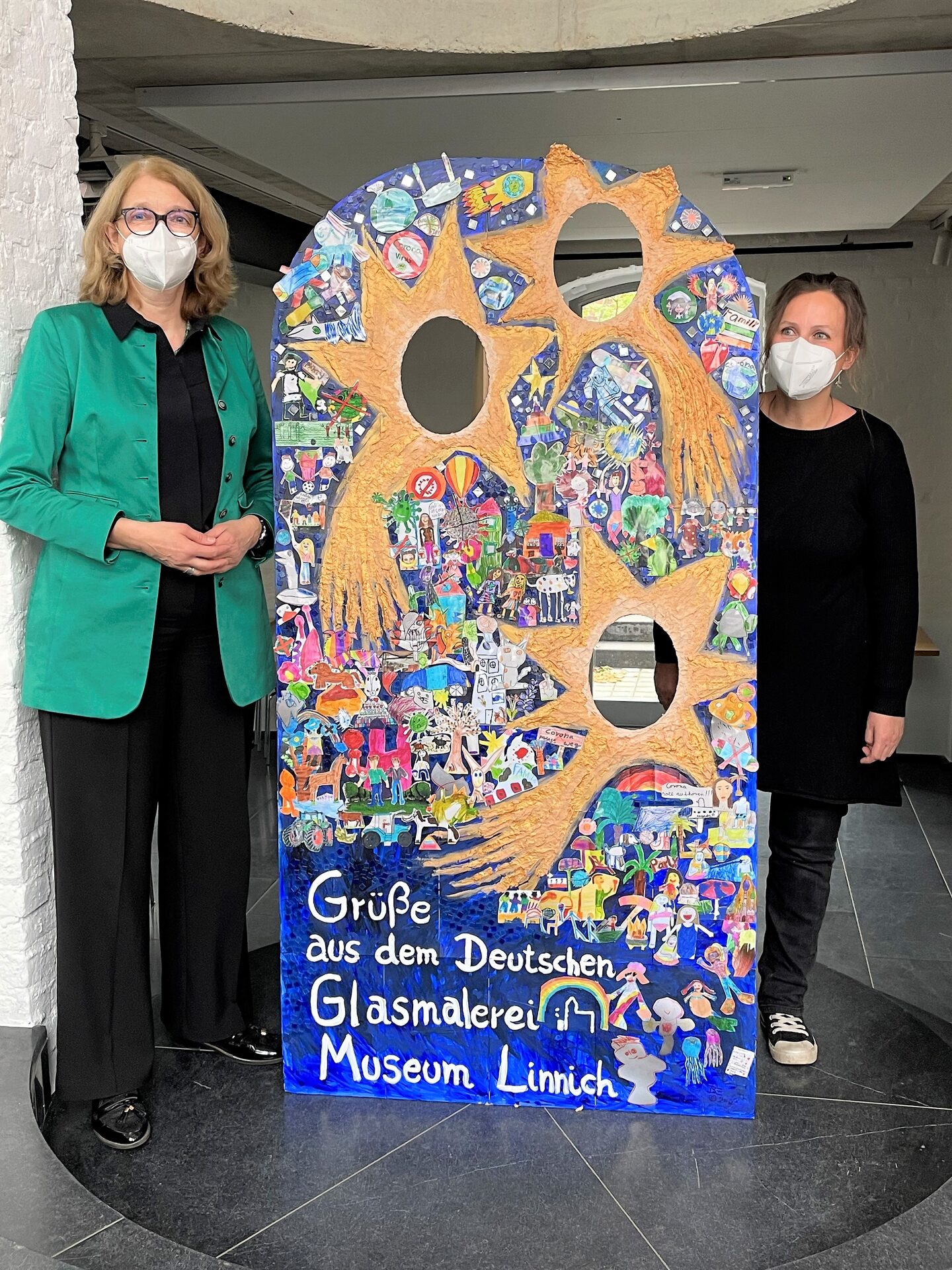 Knallbunte Fotowand im Glasmalerei-Museum ziert Kinderwünsche