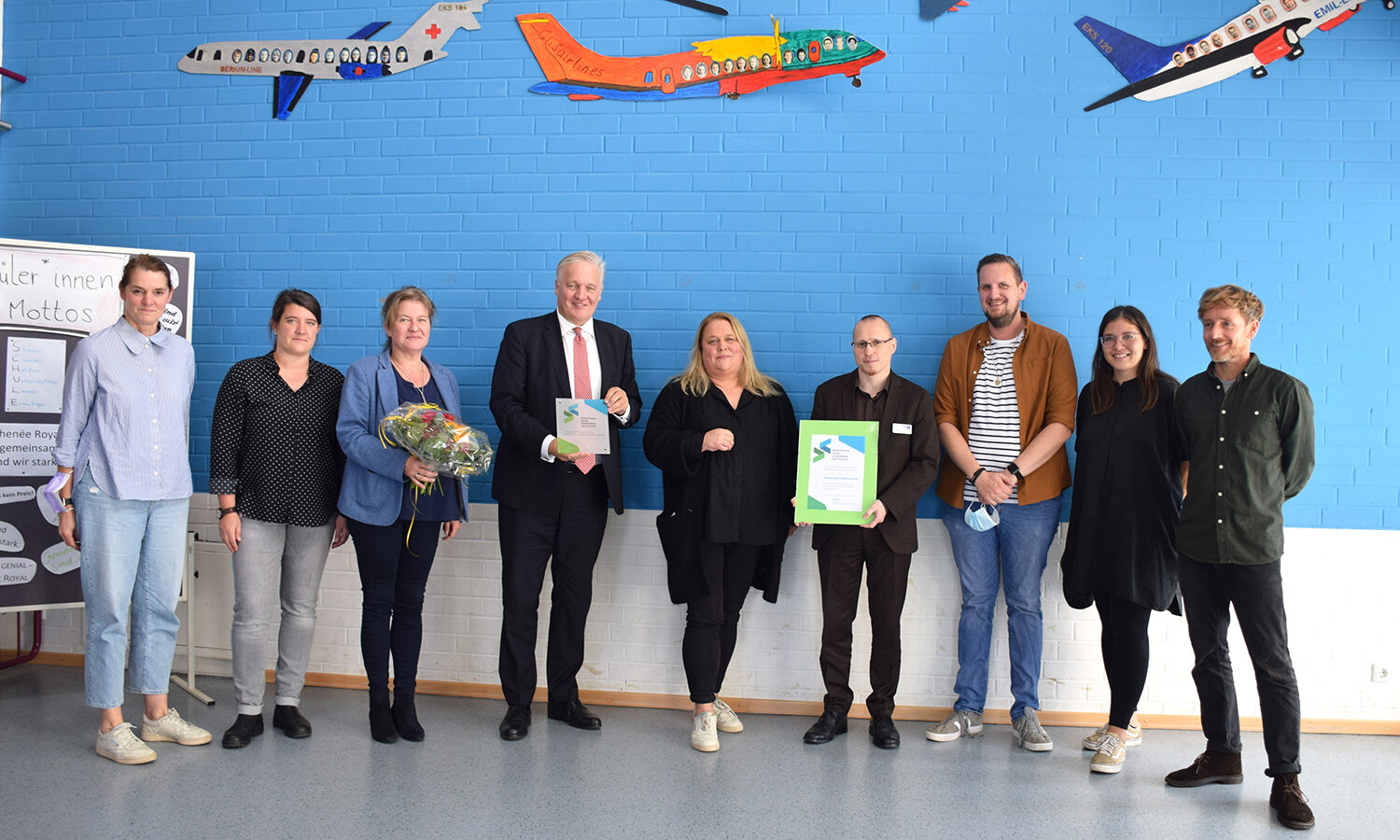 Für weitere fünf Jahre ist die Förderschule Athenée Royal nun mit dem BerufswahlSiegel ausgezeichnet worden. Landrat Wolfgang Spelthahn übergab die Plakette als Schulverbandsvorsteher des Förderschulzweckverbandes gemeinsam mit der Jury an die Schulleitung und das gesamte Team.