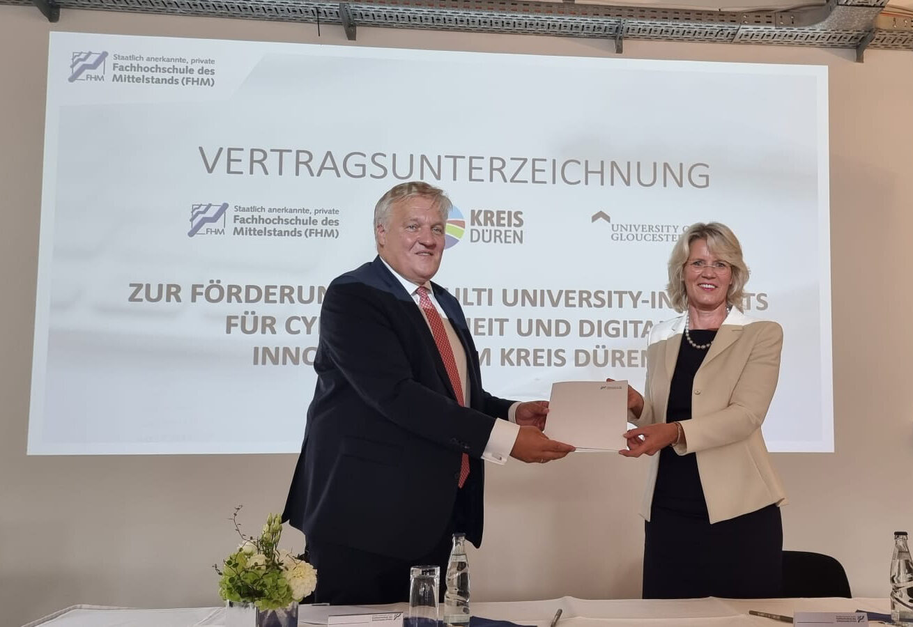 Der Kreis Düren wird nach einem einstimmigen Beschluss des Kreistages vom Juni das Cyber-Institut in den nächsten Jahren mit 4,23 Millionen Euro fördern. Düren wird erster Multi University-Campus, denn die FHM und die britischen University of Gloucestershire arbeiten zusammen. Die britische Universität startet das Bachelor-Programm Cyber and Computing Security, die FHM bietet zukünftig den Bachelor Digital Business Management an.