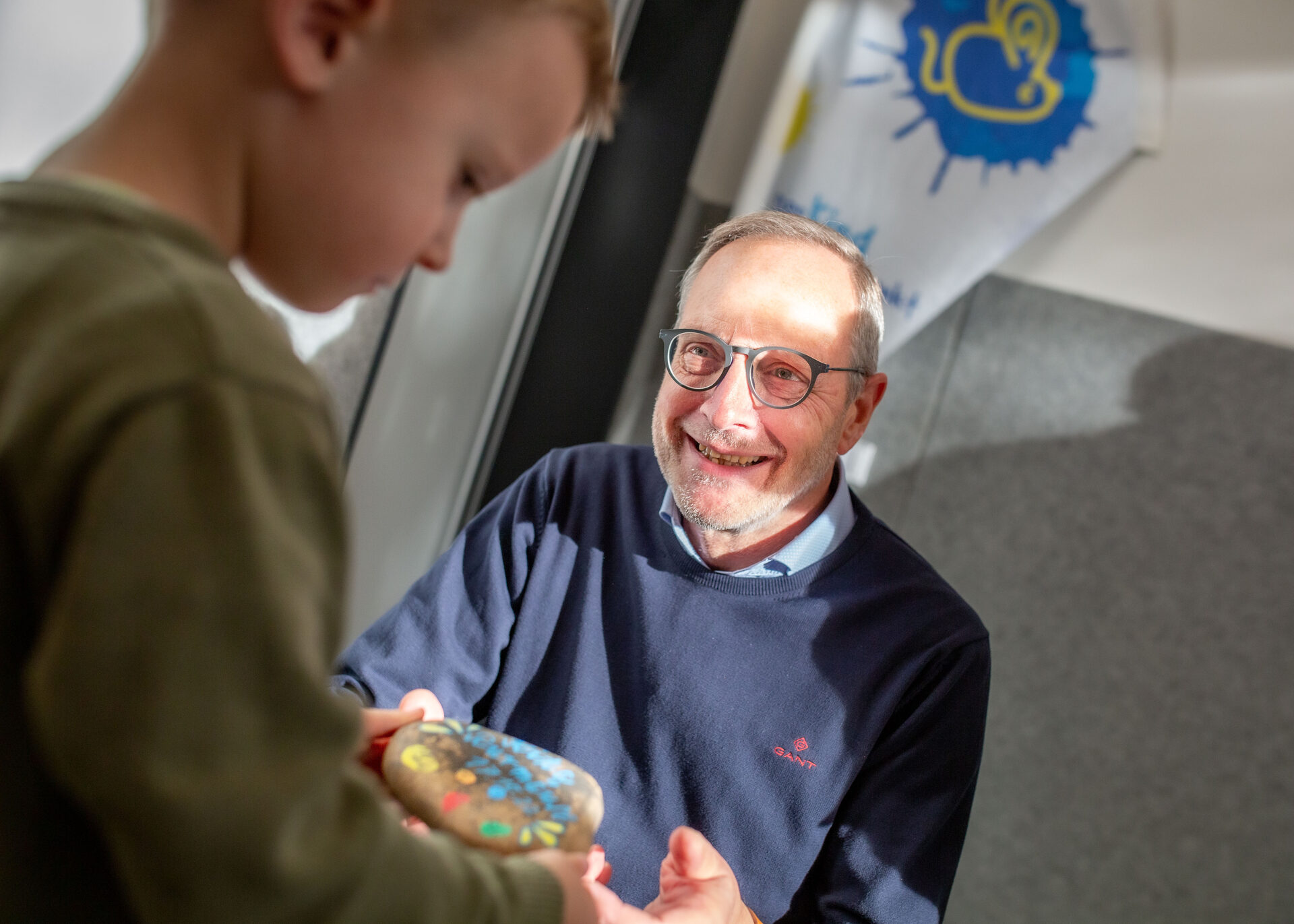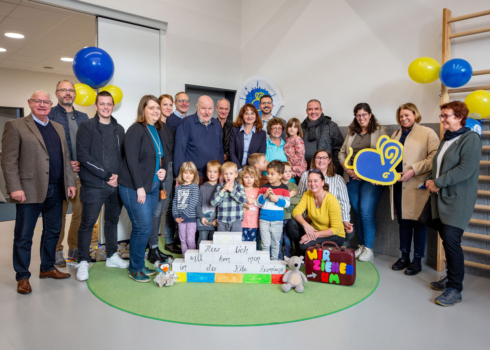24 Mitarbeiterinnen und Mitarbeiter sorgen dafür, dass sich die Rurmäuse in ihrem neuen Zuhause wohlfühlen und sehr gut betreut sind. Die Kleinen zeigten ihre Freude über die neue Kita auch bei einem Lied, das sie nach der Einsegnung durch die katholischen und evangelischen Pfarrer vorführten. Jeder Gast erhielt zudem ein Geschenk: von den Kindern bemalte Steine, die vor dem Ausbau aus der Grundstücksfläche dem Boden entnommen wurden. Bürgermeister Ingo Eßer überreichte der Kitaleitung das Kreuzauer-Wappen, um die Verbindung zur Gemeinde zu betonen.