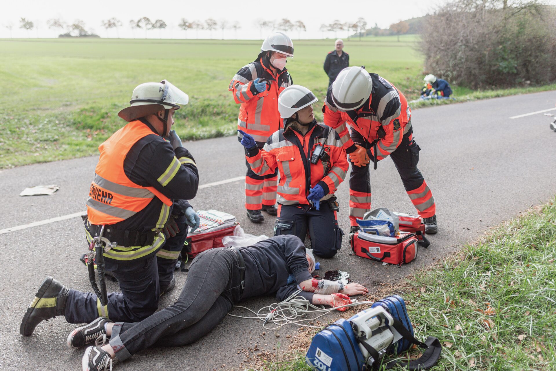 Zum Glück nur eine Übung: Feuerwehr und Rettungsdienst Kreis Düren probten bei einem Unfall mit vielen Verletzten den Ernstfall.