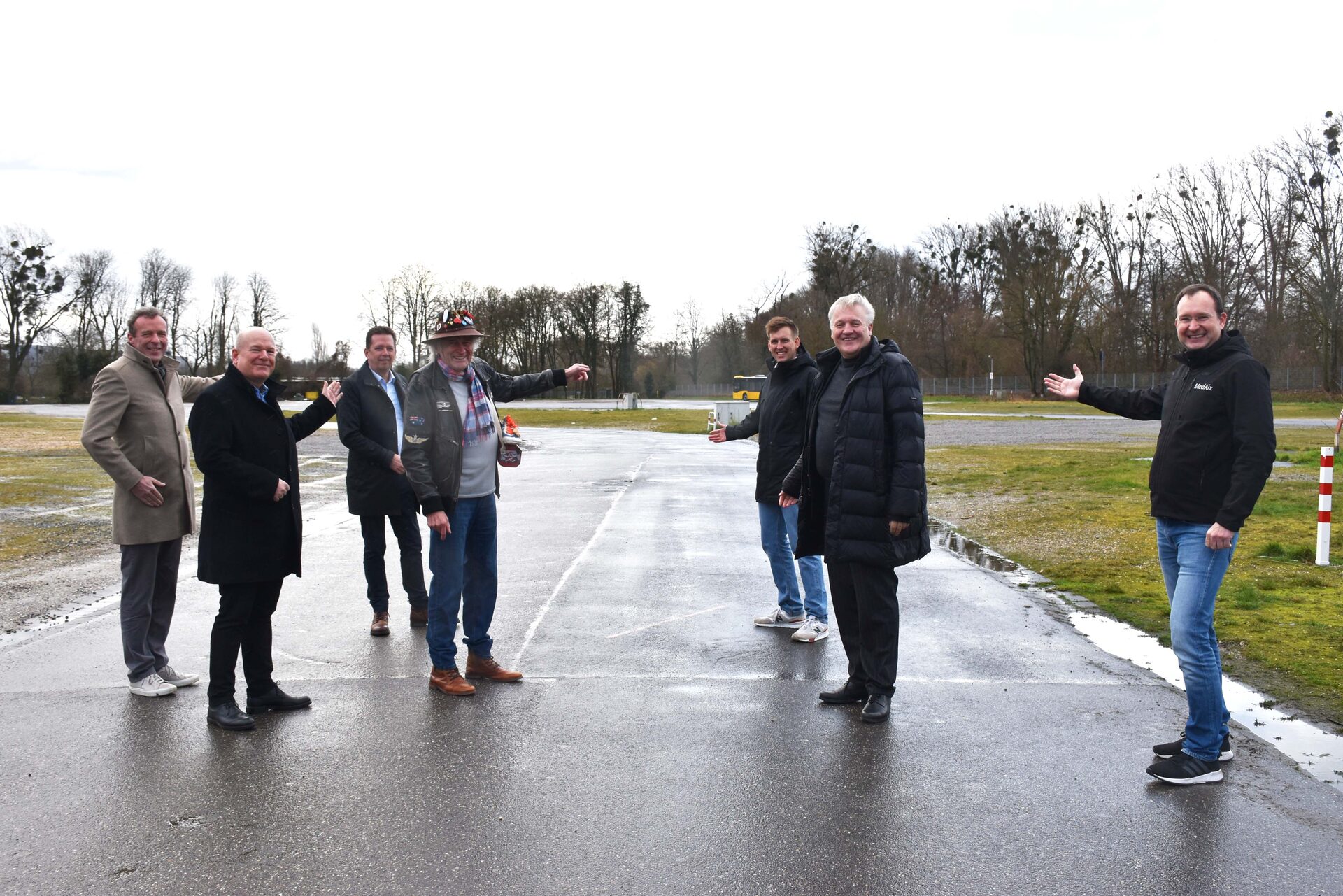 Präsentieren die Laufstrecke: Dirk Eiteneuer (Organisationsteam MedAix), Landrat Wolfgang Spelthahn, Peter Borsdorff, Jens Krützkamp (Organisationsteam MedAix), Peter Borsdorff, Jürgen Schulz, Dürens Bürgermeister Frank Peter Ullrich und und Heinrich Klocke (Hauptsponsor Stadtwerke Düren) (hinten v.r.).