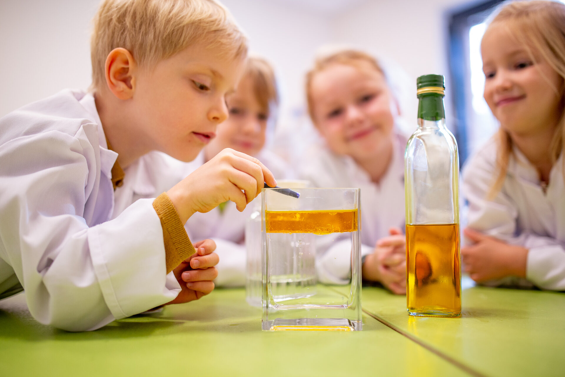 Die kleinen Forscher experimentieren vor allem mit Farben.
