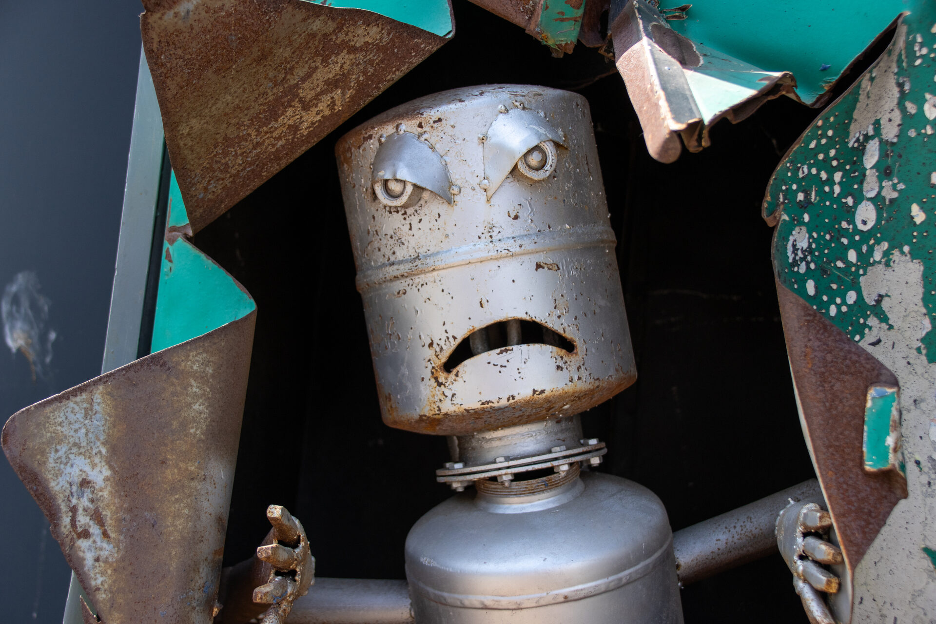 Die Kunstausstellung der job-com zeigt ab dem 20. Juni in Jülich Werke von Kundinnen und Kunden, die im Rahmen von Aus- und Weiterbildungsprojekten entstanden sind. So sind unter anderem Schweißarbeiten wie dieser Roboter zu sehen.
