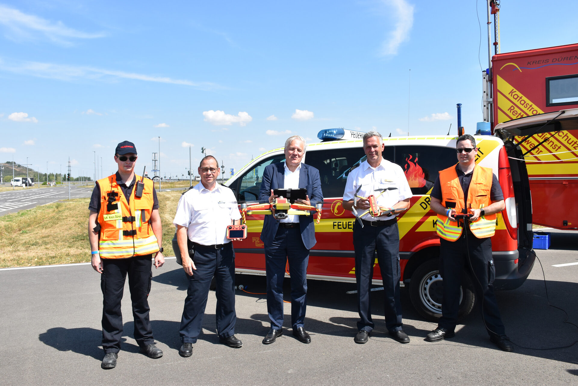 „Mit dieser hochmodernen Technik können Gefahren schneller erkannt und somit gebannt werden. Die Feuerwehr des Kreises Düren ist somit noch besser aufgestellt, wenn es um die Sicherheit der Menschen im Kreis Düren geht“, sagt Landrat Wolfgang Spelthahn. „Ich bedanke mich von Herzen für die wichtige Arbeit, die Sie für uns alle leisten.“