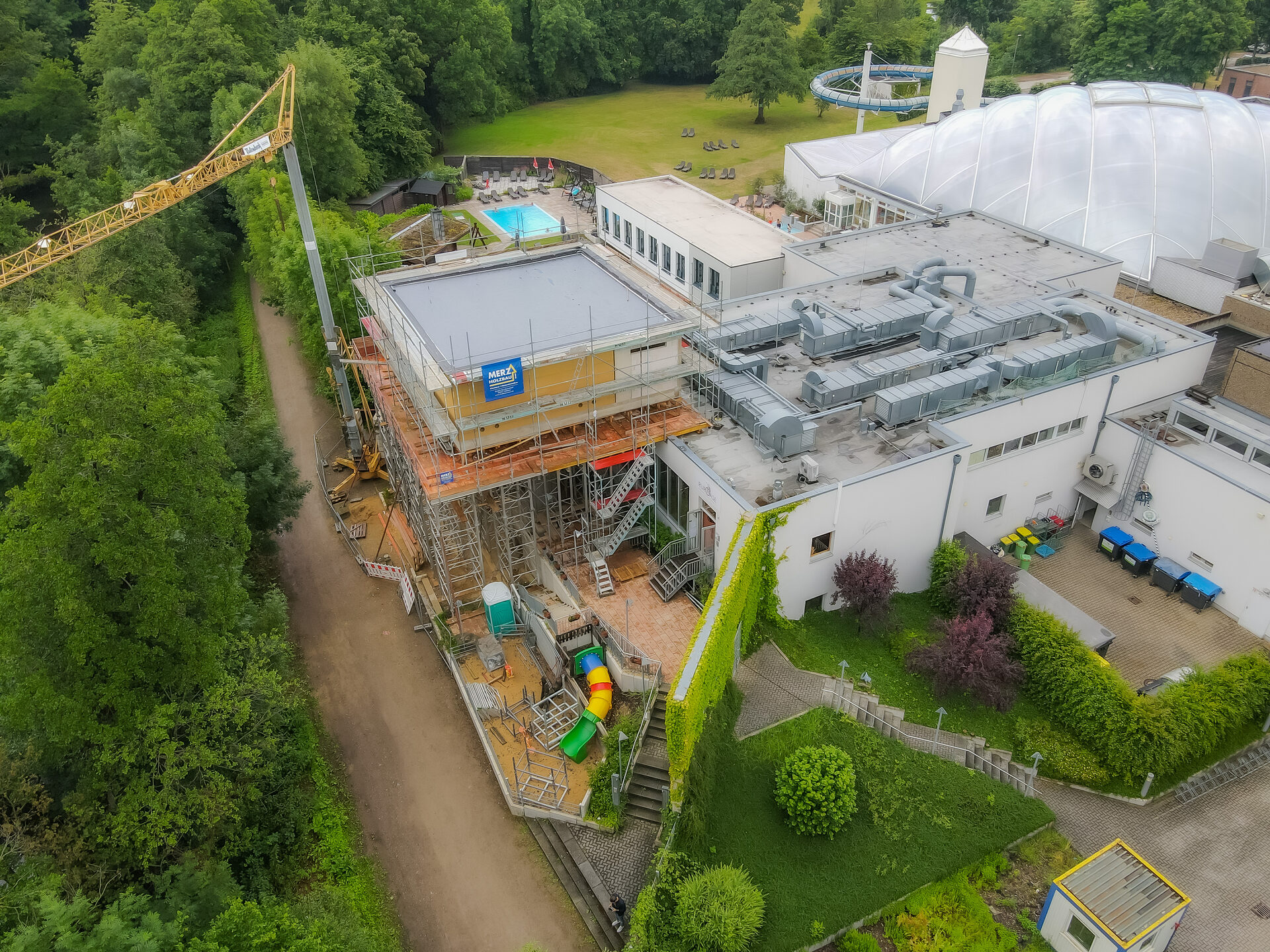Die Architekten von der soluto plan GmbH gehen davon aus, dass die Bauarbeiten bis Mitte August abgeschlossen sein werden. Geschäftsführer Sven Drewlo erläutert dazu: „Die Errichtung der Turmsauna war leider von Engpässen beim benötigten Baumaterial und krankheitsbedingten Ausfällen bei Handwerksbetrieben begleitet. Nun ist aber die Eröffnung in greifbarer Nähe, und monte mare Kreuzau wird um eine Attraktion reicher, die in dieser Form wohl einmalig ist.“