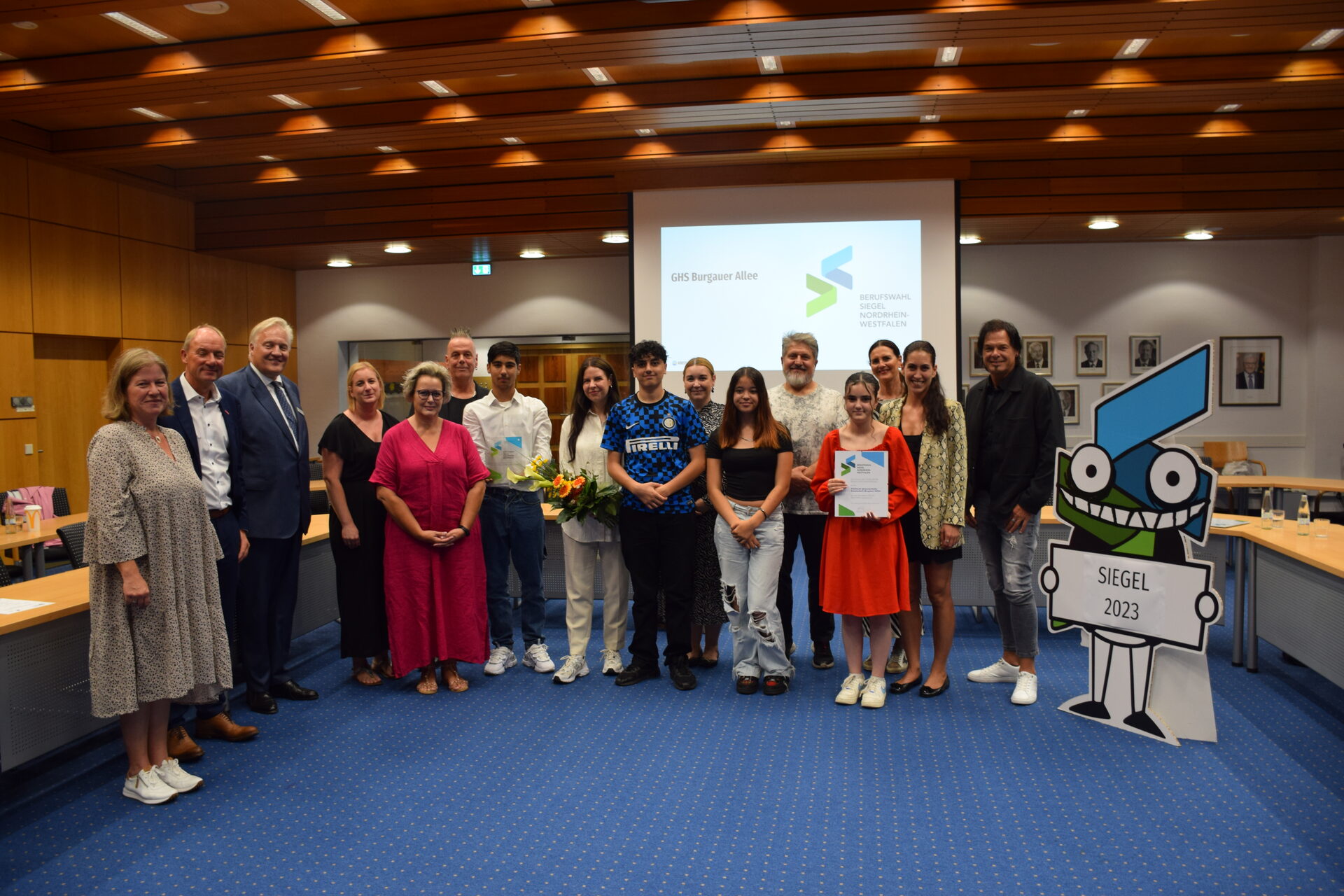 Sie gilt für die nächsten drei Jahre, darauf folgt eine Rezertifizierung. Das Berufswahlsiegel ist eine Exzellenz-Auszeichnung im Rahmen der Berufs- und Studienorientierung, für die sich alle allgemein- und berufsfördernden Schulen bewerben können. Diese besondere Auszeichnung unterstreicht die Kompetenzen der Schulen in Bezug auf die Berufsorientierung. "Immer mehr Schülerinnen und Schüler entscheiden sich zu einem späteren Zeitpunkt, was sie beruflich machen möchten. Daher würdigen wir die Schulen, die sich in besonderer Weise um die zielführende Berufswahl verdient machen", sagt Landrat Wolfgang Spelthahn bei der feierlichen Übergabe der Plaketten im Kreishaus und dankte für das Engagement.
