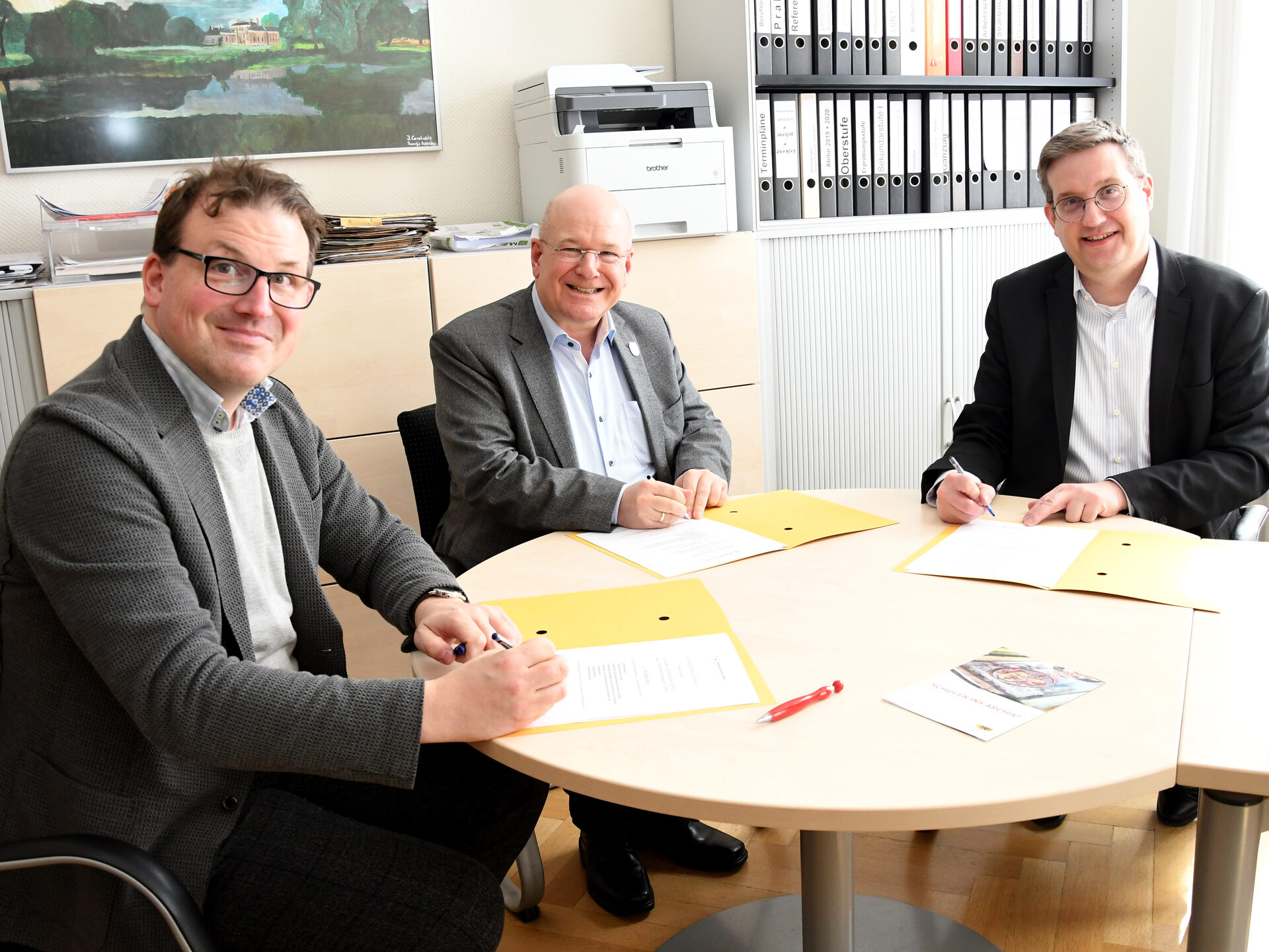 Die Bildungspartnerschaft ist zunächst auf zwei Jahre ausgelegt. Archivleiter Daniel Schulte und Bürgermeister Frank Peter Ullrich hoffen, dass weitere Schulen dem Vorbild des Stifts folgen. „Die Bildungspartnerschaft trägt auch dazu bei, Informationskompetenz und Recherchefähigkeit der Schülerinnen und Schüler zu stärken. Das sind wichtige Voraussetzungen auch für das spätere berufliche Leben“, so der Bürgermeister. Genauso sieht es auch der Schulleiter des Stiftischen Gymnasiums, Ulrich Meyer: „Viele Aspekte der Bildungspartnerschaft sind stark Studiums vorbereitend. Deswegen eignet sich eine solche Kooperation natürlich sehr gut für Schulen mit Sekundarstufe II. Aber auch für jüngere Schülerinnen und Schüler kann sie sehr interessant sein.“