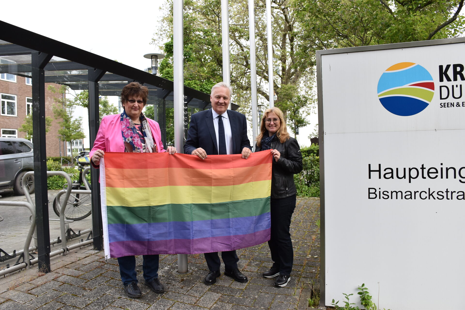 "Der Kreis Düren ist vielfältig, divers, bunt und steht für eine offene Gesellschaft. Niemand darf wegen seiner sexuellen Orientierung diskriminiert werden. Aus- und Abgrenzung haben bei uns keinen Platz", betonte der Landrat zum Internationalen Tag gegen Homo-, Bi-, Inter- und Transphobie, der jedes Jahr am 17. Mai stattfindet. Auch der Kreis Düren setzt heute wieder ein klares Zeichen und hisst die Regenbogenflagge vor dem Kreishaus. Sie steht für Vielfalt, Toleranz und Akzeptanz – Werte, mit denen sich der Kreis Düren vollkommen identifiziert.