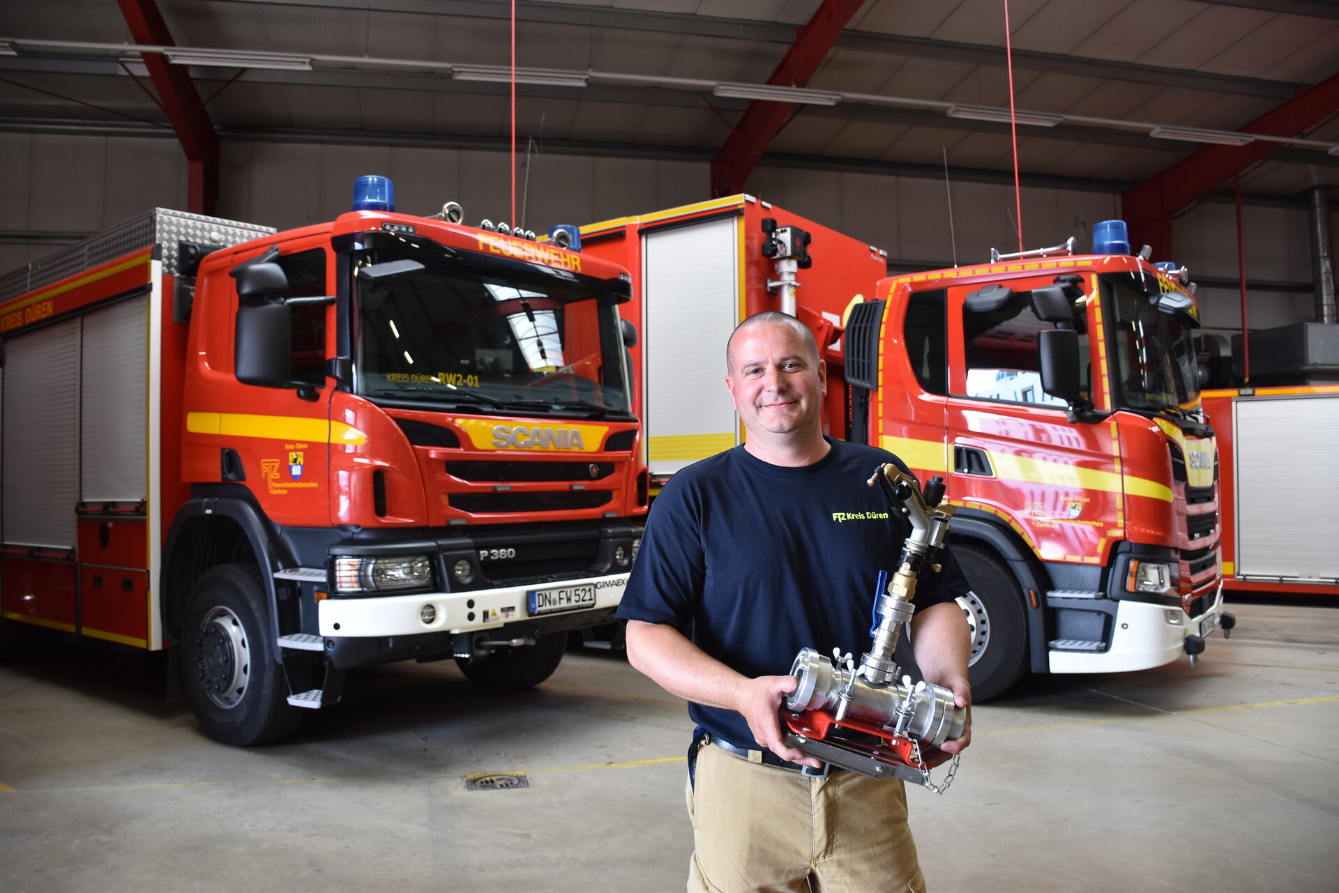 Waldbrände, Vegetationsbrände, Feuer an Autobahnen oder auf Landstraßen – bei diesen Einsätzen sind oft keine Wasserleitungen in der Nähe und genau dafür ist das Feuerschutztechnische Zentrum des Kreises Düren nun bestens vorbereitet. Zwei alte sogenannte Abrollbehälter, die jeweils 5.000 Liter Wasser aufladen konnten, wurden aufgrund von technischen Mängeln durch zwei neue, mit Containern beladene, Fahrzeuge ersetzt. In den Containern, die je nach aktuellem Bedarf aufgebracht werden, können nun jeweils knapp 10.000 Liter Wasser transportiert werden. Sie wurden auch schon bei Bränden im Hohen Venn, im Hambacher Forst und bei einem Kirchenbrand eingesetzt. "Mit den neuen Containern wollen wir uns für Notfälle noch besser wappnen und neben der Bevölkerung natürlich auch den Wäldern und Tieren noch schneller Schutz bieten. Die Waldbrandgefahr steigt, also müssen wir stets vorbereitet sein und mit Weitblick agieren", sagt Landrat Wolfgang Spelthahn. Bei einem Waldbrand wird das Wasser mit den neuen Abrollbehältern zu den Löschfahrzeugen gebracht, damit diese das Wasser dann zum Löschen der Flammen nutzen. Ein alltägliches Löschfahrzeug kann nämlich "nur" 1.000 bis 4.000 Liter Wasser transportieren – und die sind gerade in abgelegenen Wäldern schnell aufgebraucht.
