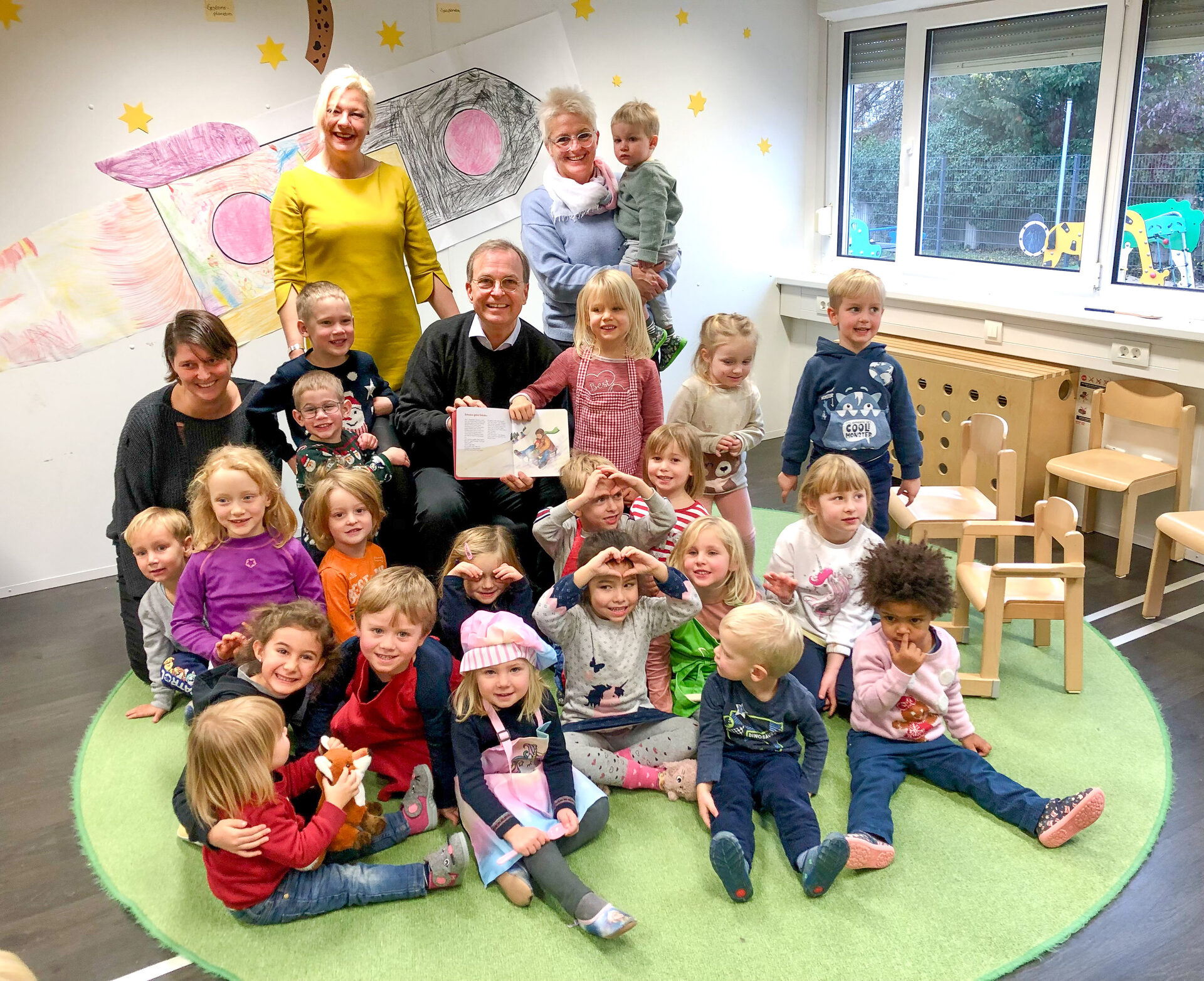 Am Nikolaustag besuchte er die Kita der Kreismäuse AöR Düren – mit einem Buch voller Weihnachtsgeschichten unter dem Arm. Mucksmäuschen still war es dann auch, als der überraschende Besuch den kleinen Nachwuchsforschern Geschichten von der Weihnacht vorlas. Angetan von den Kindern und dem interessanten Ambiente verabschiedete sich Thomas Rachel von den Kindern und den Erzieherinnen um Kitaleitung Christiane Junggeburth und stellte in Aussicht, noch einmal wiederzukommen.