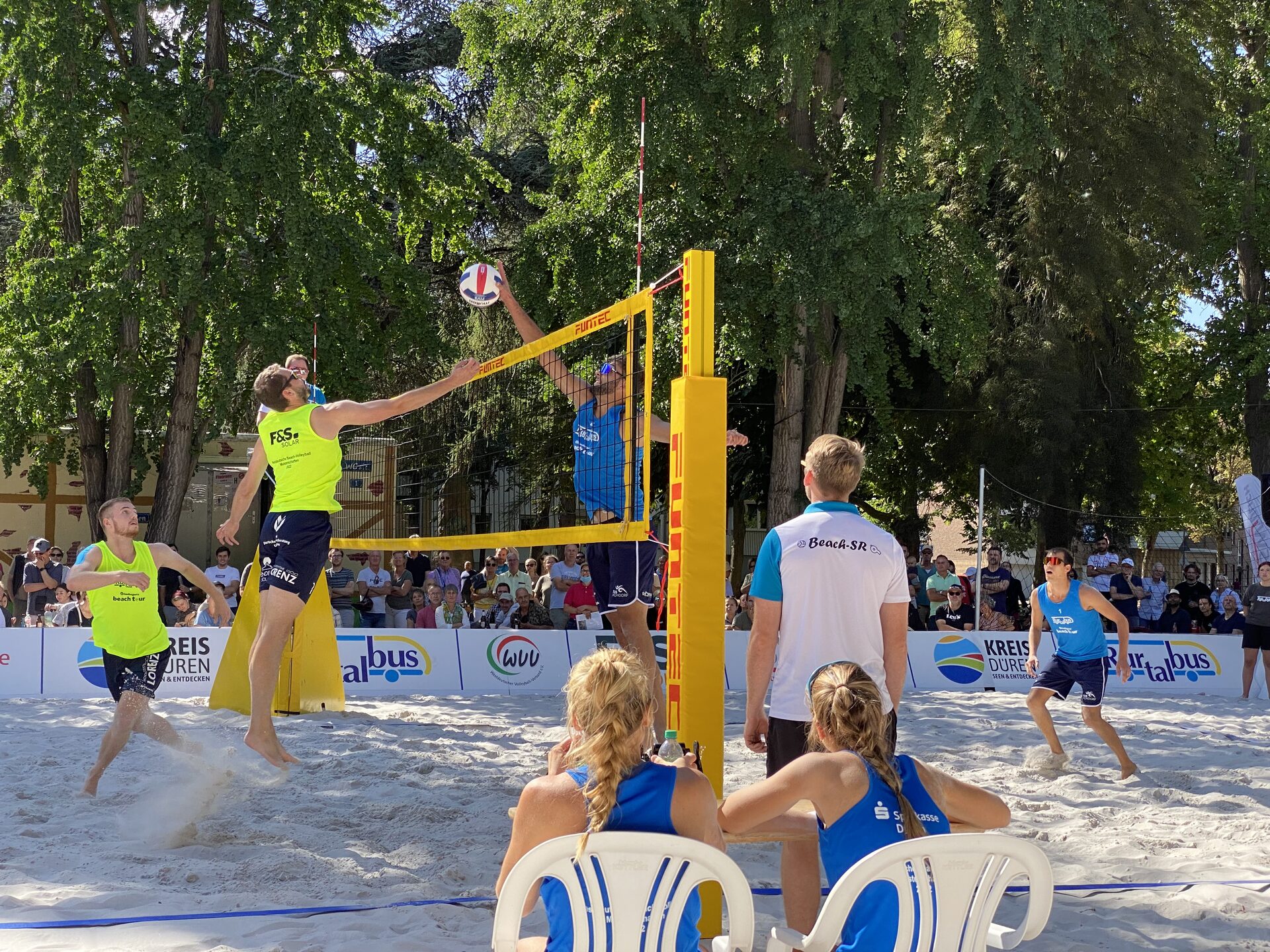 Die Zuschauerinnen und Zuschauer erleben auf dem Schlossplatz in Jülich bei freiem Eintritt Beachvolleyball vom Feinsten. Die Vorrunden des Rur-Beach-Cups sind am Samstag, die spannenden Endspiele und die Siegerehrung am Sonntag. Beginn ist jeweils um 9 Uhr. Bei den Männern versuchen Fabian Jeff Kaiser und Nico Wegner ihren Titel erneut zu verteidigen. Bei den Damen ist auch die Siegerin aus dem vergangenen Jahr, Luisa Doss, dabei, die nun mit Ida Burbulla antritt. Letztes Jahr holte sie mit Lisa Schreiner den Titel. "Es ist jedes Jahr wieder einer der sportlichen Höhepunkte im Kreis Düren. Spannende Spiele und Volleyball auf höchstem Niveau sind garantiert", sagt Landrat Wolfgang Spelthahn, der Initiator und Schirmherr des Turniers ist. Bevor die Profis den Sand am Wochenende stürmen, dürfen am Freitag, 25. August, ab 14 Uhr die Freizeit- und Hobbymannschaften auf das Feld, denn da geht es um den Sieg vom SWJ-Cup, also Stadtwerke Jülich-Cup.