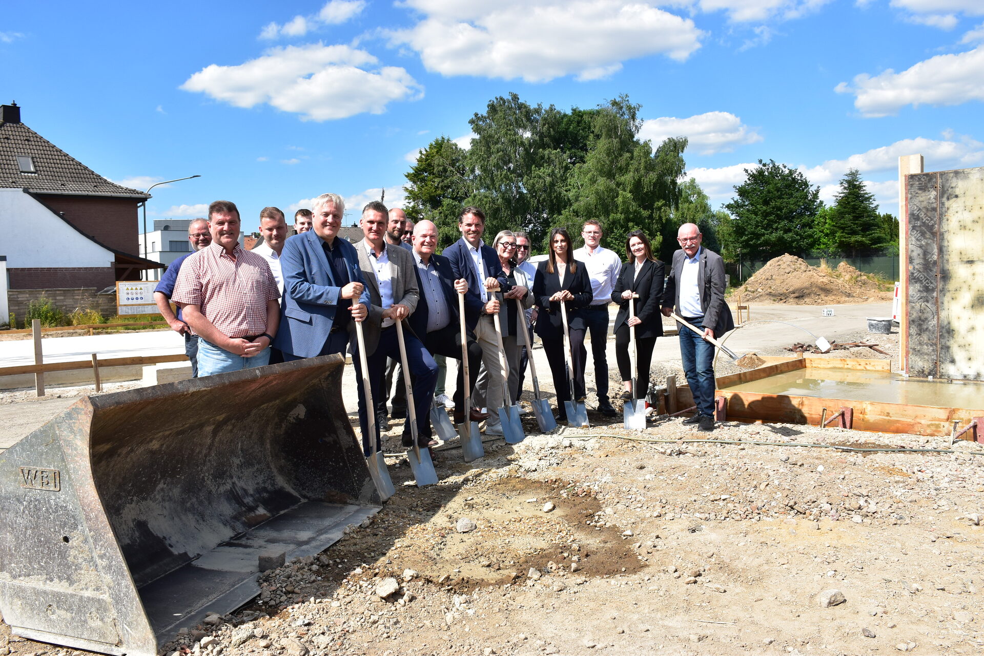 Landrat Wolfgang Spelthahn, der Bürgermeister der Gemeinde Niederzier, Frank Rombey, Vorstands- sowie Aufsichtsratsmitglieder des Dürener Bauvereins sowie am Bau beteiligte Personen kamen gestern, am Mittwoch, 14. Juni, in Niederzier zum feierlichen Spatenstich für ein Wohnprojekt zusammen.