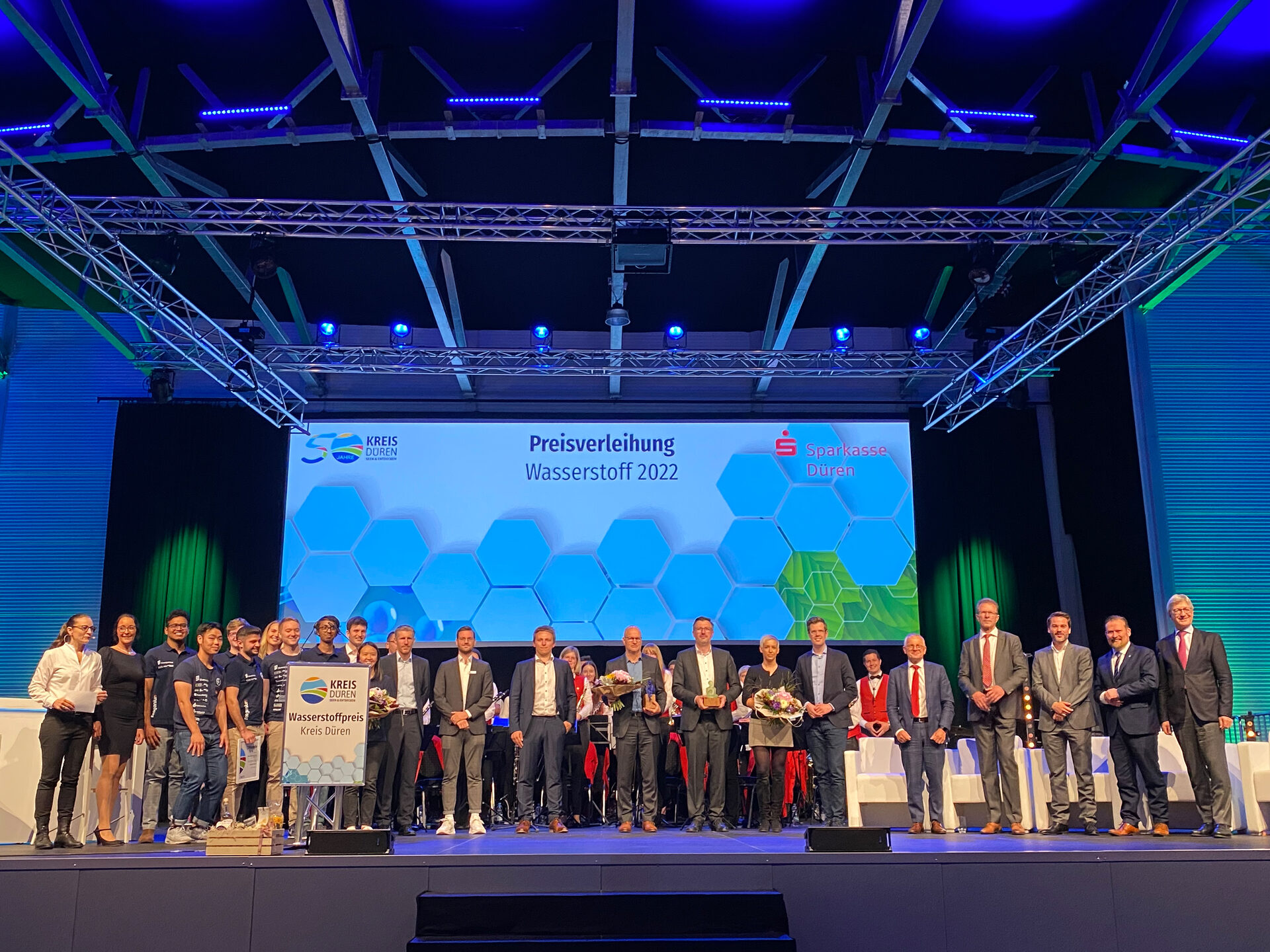 Und das muss gewürdigt werden: auch in diesem Jahr wird wieder der Wasserstoff-Preis des Kreises Düren verliehen. Er richtet sich an junge Forscher, Start Ups und etablierte Unternehmen aus der Region. Die Preise werden feierlich am Donnerstag, 17. August, zum zweiten Mal überreicht. Eine Jury aus Wissenschaft, Forschung und Unternehmen sichtet die zahlreichen Vorschläge und wählt die Siegerinnen und Sieger aus. Zu gewinnen gibt es Skulpturen, die den Namen "Hygo" tragen. Dies wird von Hugo, was im Althochdeutschen "der denkende Geist" oder "der Kluge" bedeutet, abgeleitet. Hy ist die internationale Abkürzung für Hydrogen, also Wasserstoff. Vor geladenen Gästen werden Preise in den Kategorien Young Researchers, Start-up Innovation und Hydrogen Champion überreicht. "Unsere Region erlebt aufgrund des Strukturwandels einen starken Umschwung und hat sehr viel Potenzial – sowohl als Standort als auch mit herausragendem Know-how. Die Preisträgerinnen und Preisträger glänzen mit ihren Visionen. Sie gestalten die Zukunft und zeigen, dass der Kreis Düren bei den Themen Wasserstoff und Klimaschutz mit gutem Vorbild vorangeht", sagt Landrat Wolfgang Spelthahn.