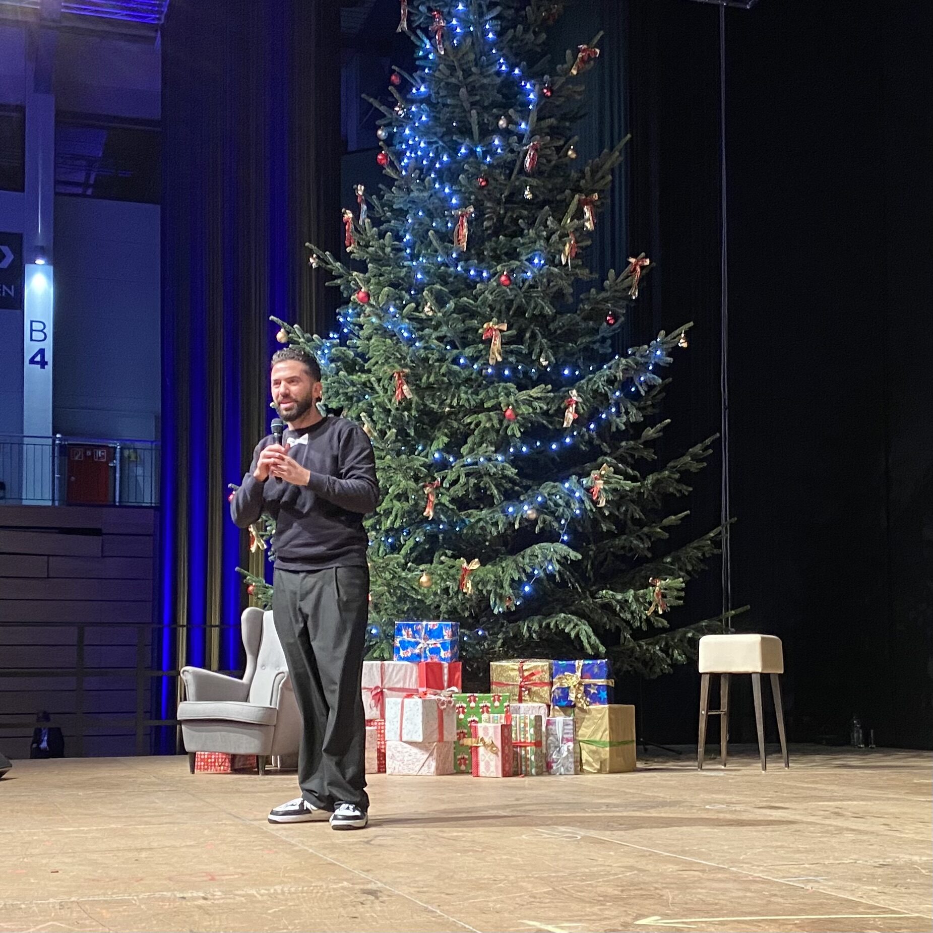 Der Abend startete dann mit vielen Lachern - für die sorgte der bekannte Comedian Khalid Bounouar mit seinen Gags und schlagfertigen Sprüchen. Nach dem Comedyprogramm ging es musikalisch weiter: Beim Mitsingkonzert mit Björn Heuser, der mit den Ehrenamtlerinnen und Ehrenamtlern kölsche Lieder sang.