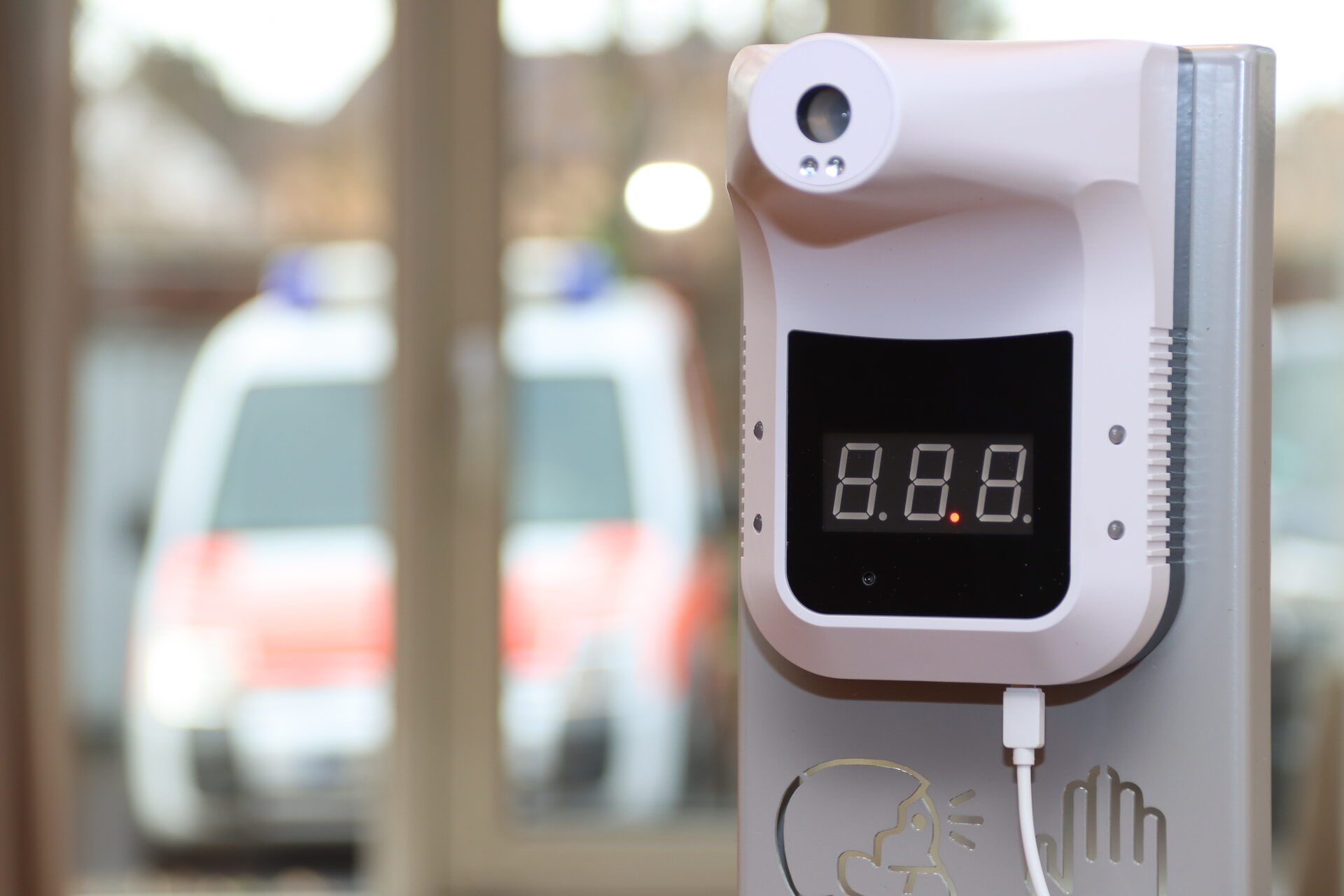 Fiebermessgerät am Eingang des Impfzentrums.