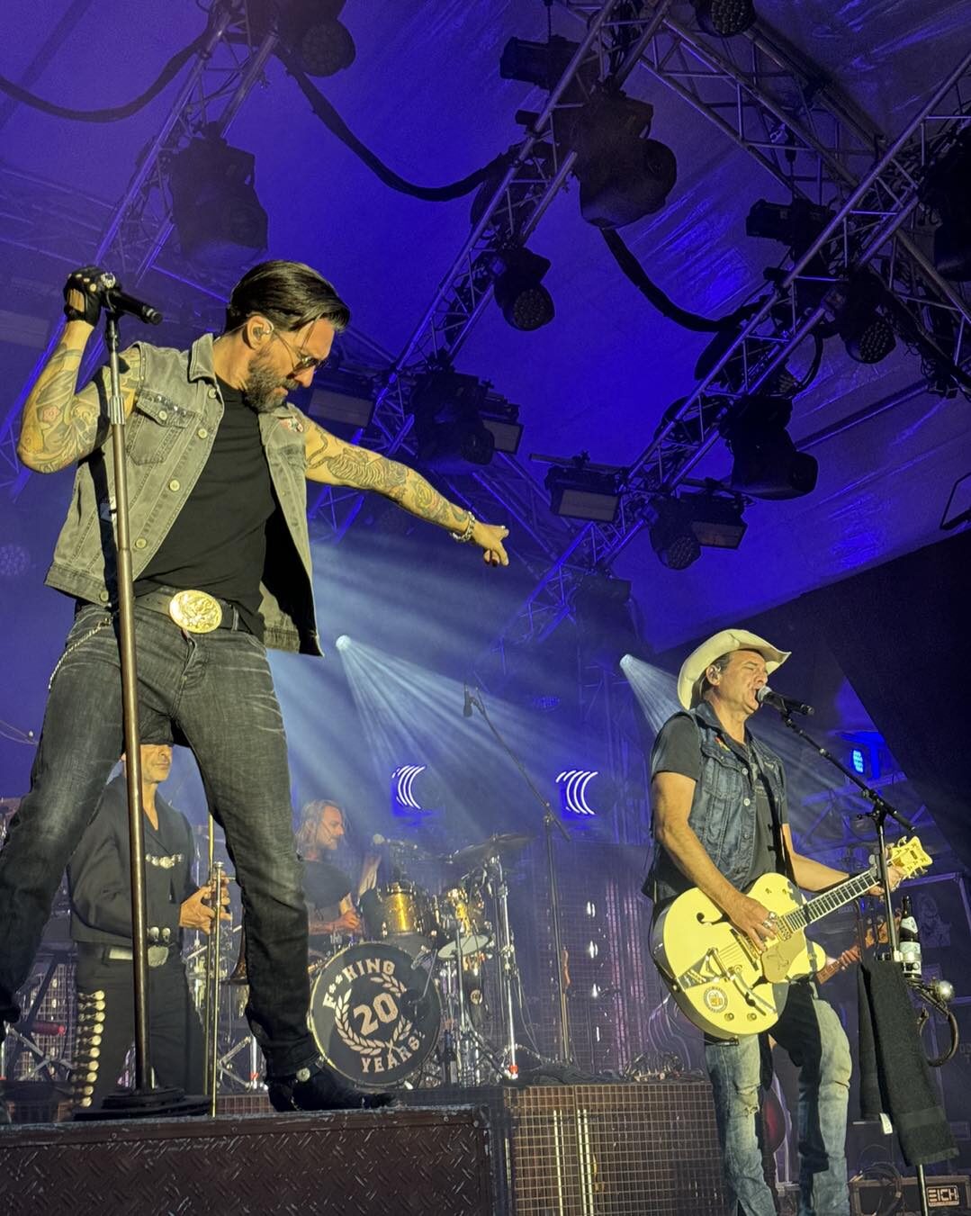 The BossHoss haben Feuer mit nach Nideggen gebracht und spielten Country-Rock vom Feinsten. Auf der Bühne in historischer Kulisse feiern sie ihr 20-jähriges musikalisches Bestehen und gleichzeitig Tourabschluss! Das wollte mit einer ordentlichen Party gewürdigt werden! Stillstand und Pause im Publikum haben keine Chance. Es wird getanzt, gesungen und durchgerockt. Zwischendurch ergänzten noch Stage Diving von einem oberkörperfreien Alec Völker, von rechts nach links hüpfende Fans und ein ohne Pause springendes Publikum einen der energiereichsten Abende in der Geschichte der "Bühne unter Sternen".