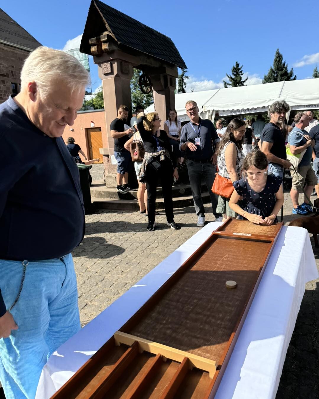 Schon früh tummelten sich zahlreiche Familien bei strahlendem Sonnenschein auf der Burg Nideggen und tauchten in die Welt des Mittelalters ein: Gaukler, Zauberer, Feuerjongleure, das DRK-Teddybärkrankenhaus, Seifenblasen, klassische Spiele oder Bastelaktionen waren Teil des Programms, das vom Burgenmuseum federführend gestaltet wurde. Auch das Jugend- und das Generationenamt des Kreises Düren stellen sich vor und sorgten für lange Schlangen am Glücksrad.