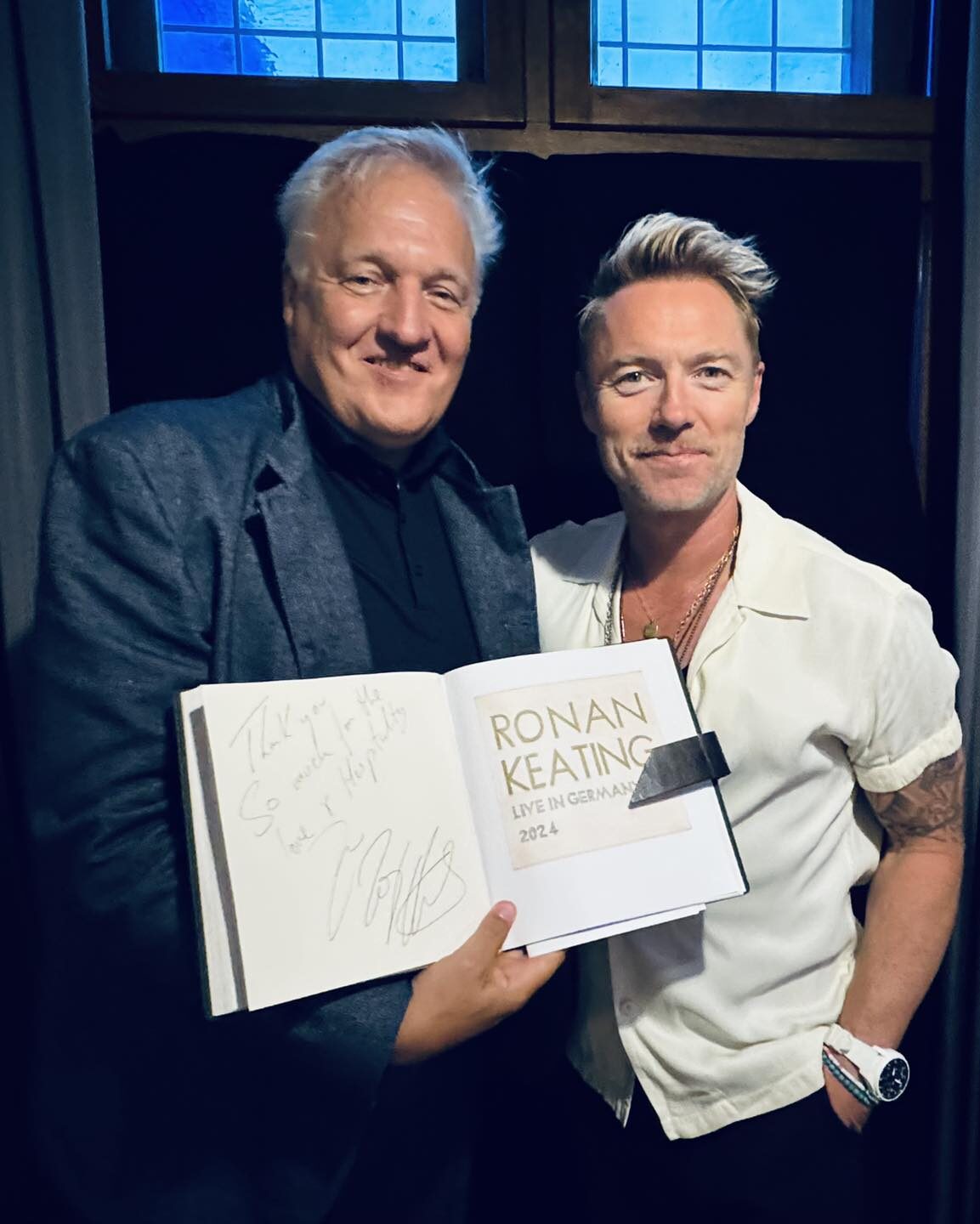 Zuvor trug sich Roanan Keating auf Einladung von Landrat Wolfgang Spelthahn ins Goldene Buch des Kreises Düren ein. Dabei unterhielten sich die beiden über die tolle Atmosphäre in Nideggen und Keating betonte, wie sehr er sich auf das Konzert freut. Es ist das letzte Deutschland-Konzert seiner Tour.