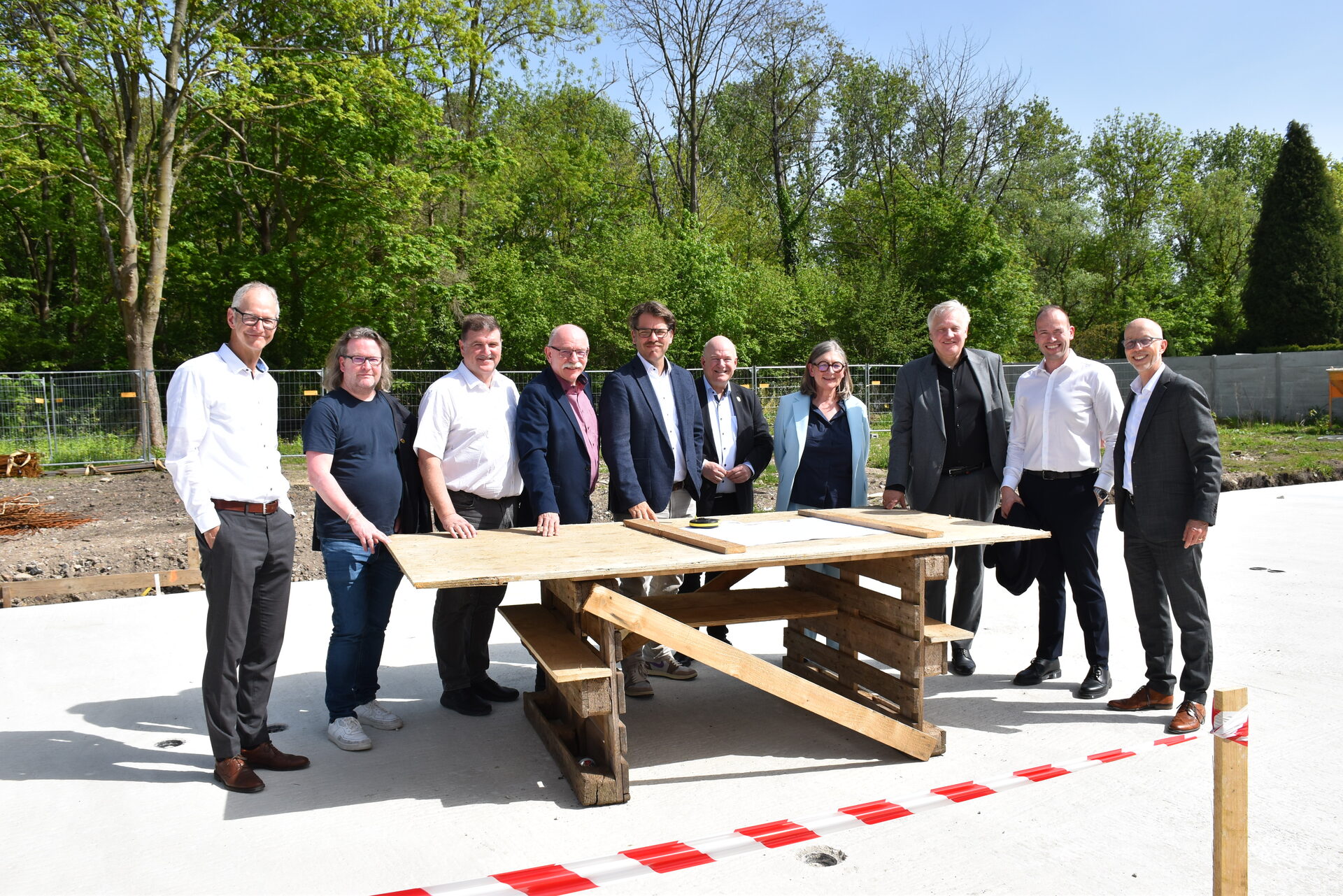 Das Investitionsvolumen des Dürener Bauvereins beläuft sich auf rund fünf Millionen Euro. Den Vertreterinnen und Vertretern des Kreises Düren, der Stadt Düren sowie der Dornieden Gruppe, die die Projektplanung sowie den Bau in Düren-Lendersdorf realisiert, wurde der aktuelle Stand der Baustelle präsentiert. Landrat Wolfgang Spelthahn betonte die Notwendigkeit von neuem Wohnraum in Stadt und Kreis Düren: "Wir wachsen rasant und nähern uns dem Ziel einer Einwohnerzahl von 300.000. Wir verzeichnen einen großen Zuzug und sehen starke Bedarfe. Daher freut es mich umso sehr, dass der Dürener Bauverein in Kooperation mit der Dornieden Gruppe hier neuen Wohnraum für die Menschen schafft – und das trotz hoher Zinsen, gestiegener Baukosten und Lieferengpässen."