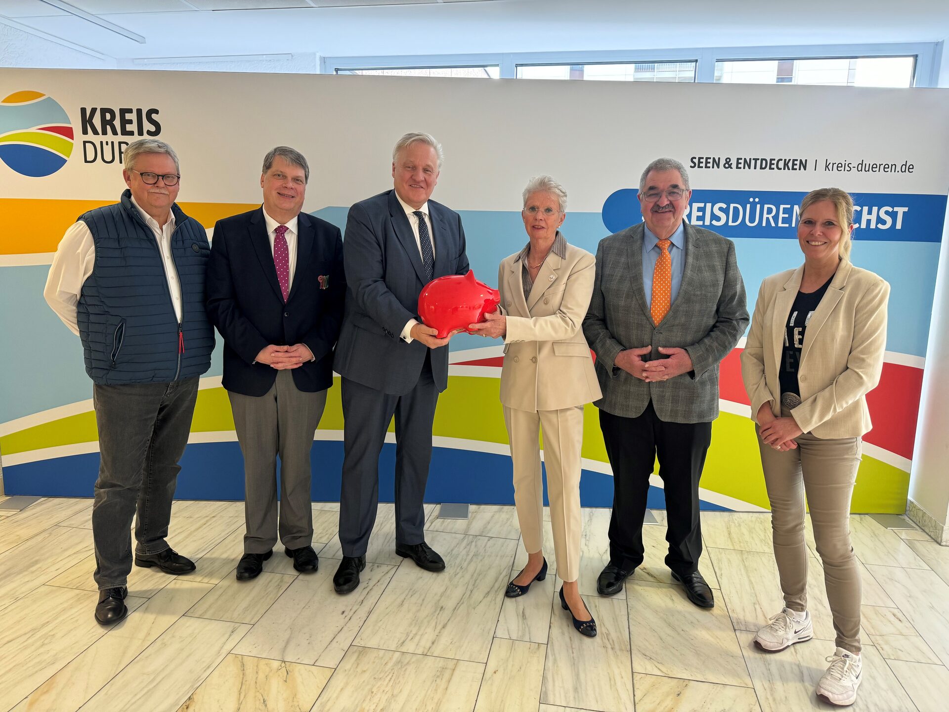 Sie haben nicht nur die Tollitäten begrüßt, sondern währenddessen auch fleißig das rote Sparschwein mit 1025,40 Euro vor Ort gefüttert, das nun von Landrat Wolfgang Spelthahn und dem Regionalverband Dürener Karneval an die Innecken-Prüss-Stiftung übergeben wurde. Das Geld geht an Menschen und Tiere in Not.