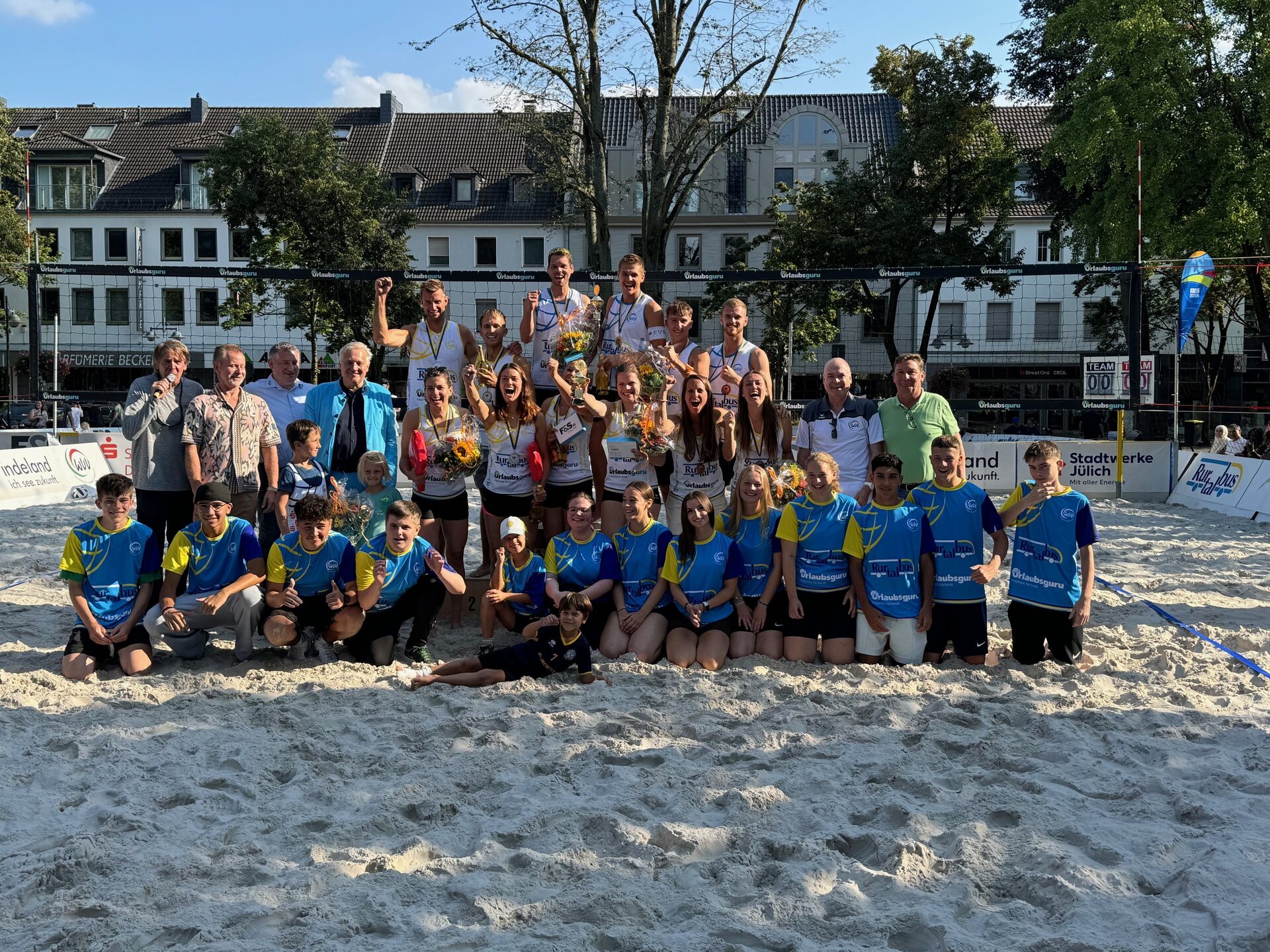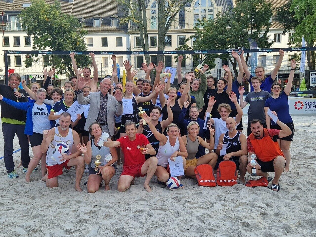 „Der Rur-Beach-Cup ist eine Traditionsveranstaltung und ist auch während der Coronazeit weitergelaufen. Zum achten Mal wurden zudem die Westdeutschen Meisterschaften ausgetragen. Das ist ein Qualitätsmerkmal und eine Auszeichnung für uns, dass wir diese Chance haben", sagte Landrat Wolfgang Spelthahn, dem es zu verdanken ist, dass das Turnier im Kreis Düren ein Zuhause gefunden hat. Und das bereits zum 23. Mal. Der Kreis Düren möchte auch im kommenden Jahr wieder Austragungsstätte für die Westdeutschen Meisterschaften sein, betonte der Landrat. Landrat Wolfgang Spelthahn ehrte als Schirmherr gemeinsam mit Hubert Martens (Westdeutscher Volleyballverband), Christian Hoverath (Rurtalbus), Uwe Czypiorski (F&S Solar) und Bürgermeister Axel Fuchs die Gewinnerinnen und Gewinner.