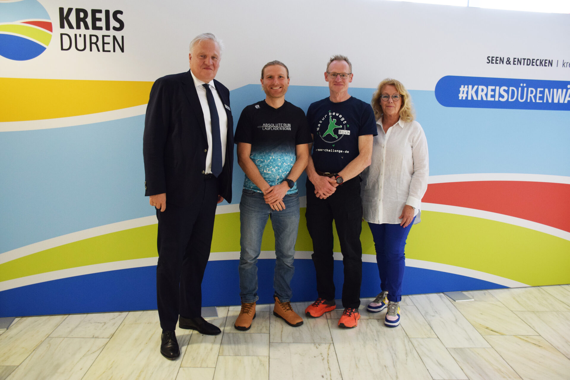 Landrat Wolfgang Spelthahn, die Organisatoren Fabian Rahn und Norbert Wortberg und Annegret Greven (Kreis Düren/v.l.)) freuen sich auf die Premiere des Rureifel-Trails.