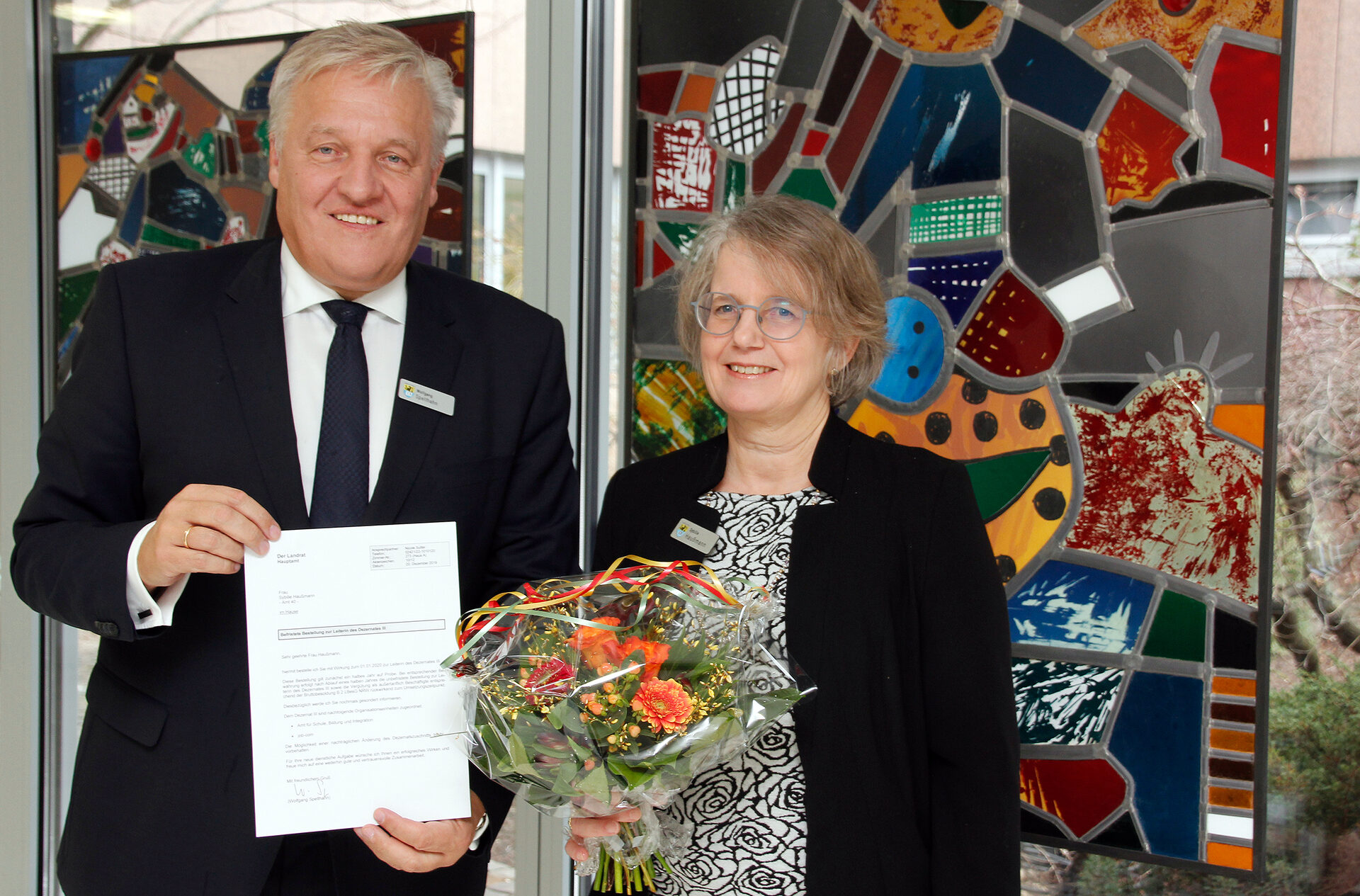 Sybille Haußmann ist neue Dezernentin in der Kreisverwaltung Düren und übernimmt damit die Zuständigkeit für die job-com und das Amt für Schule, Bildung und Integration. Landrat Wolfgang Spelthahn überreichte ihr jetzt die Ernennungsurkunde.