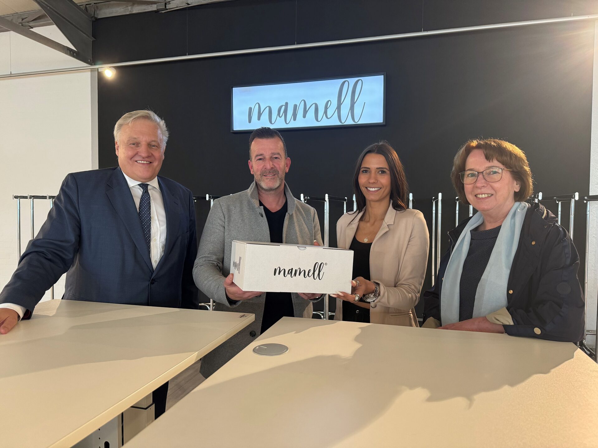 „Wir arbeiten immer mit dem Geld, das reinkommt und investieren ins Unternehmen, das weiter wächst”, sagt sie. Der Name „mamell” ergibt sich aus dem Vornamen ihres Mannes, Marc, der mit ihr dir Firma gegründet hat, und ihrem Namen, Melanie. Der Online-Handel macht den Großteil ihres Umsatzes aus, der Laden in der Kölnstraße in Jülich nicht wegzudenken: „Die Kundinnen sagen uns, dass sie froh sind, hier ein Geschäft zu haben, in dem sie Trends einkaufen können. Sie müssen nicht in die Großstädte Aachen, Köln oder Düsseldorf fahren. Das funktioniert in Jülich super”, sagt sie. Landrat Wolfgang Spelthahn, der die Titzerin in Begleitung von der Wirtschaftsförderin des Kreises Düren, Anette Winkler, sowie dem Bürgermeister Jülichs, Axel Fuchs, in ihrem Laden und im Logistikzentrum besuchte, zeigte sich begeistert: „Ihre Geschichte ist wirklich beeindruckend und sie können stolz auf das sein, was sie geleistet haben. Sie, ihr Team und das Unternehmen sind ein Gewinn auch für den Kreis Düren”.
