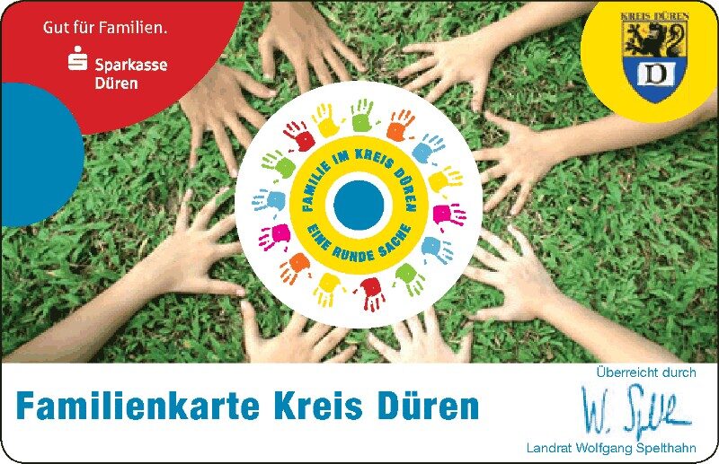 Mit der Familienkarte wurde im Rahmen der Initiative "Familie im Kreis Düren - Eine runde Sache!" ein besonders familienfreundliches Angebot geschaffen, das Familien aus dem Kreis Düren ermöglicht, Vergünstigungen in ganz unterschiedlichen Bereichen in Anspruch zu nehmen.