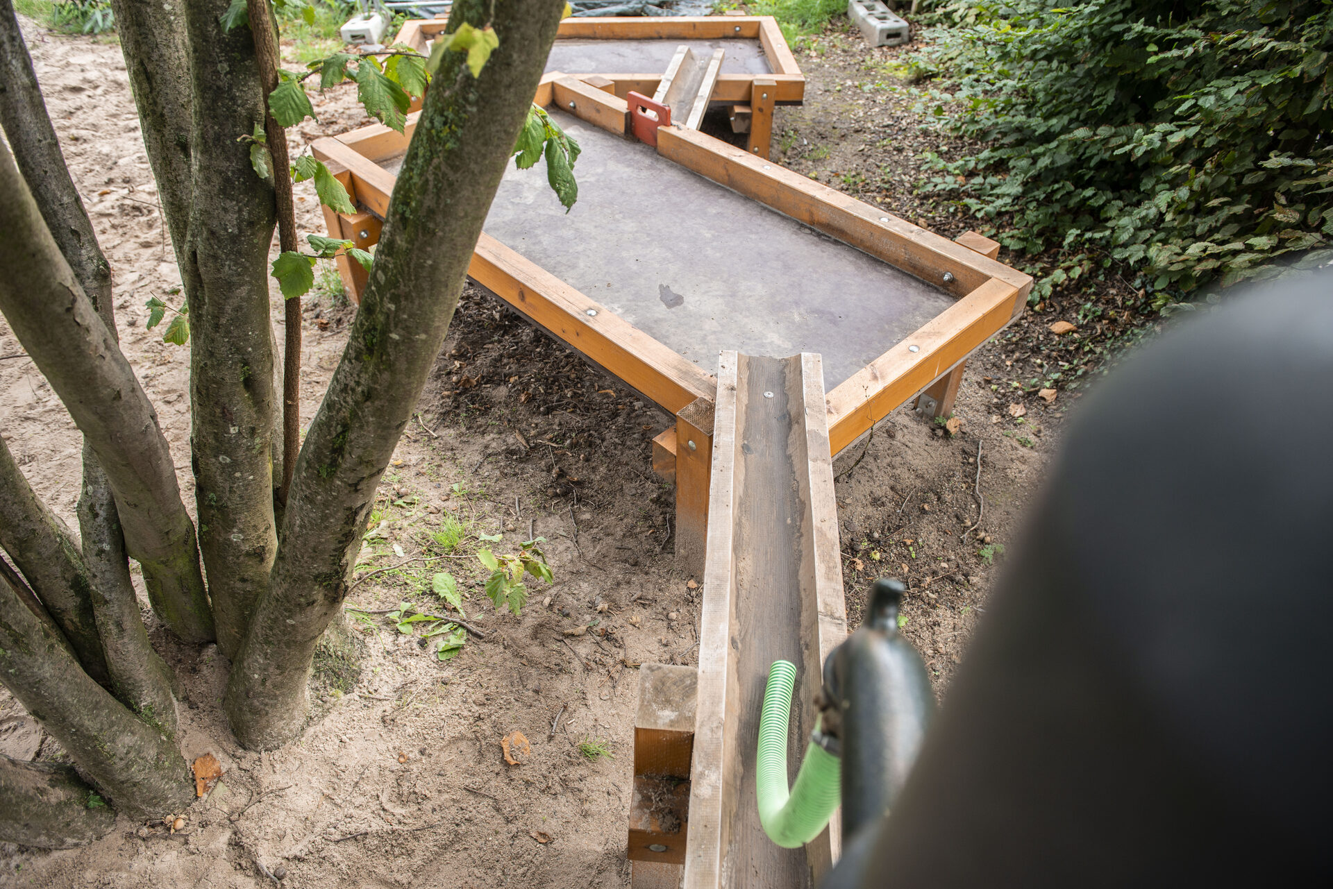 Unser großzügig angelegtes Außengelände lädt unsere Kinder zum Bewegen und entdecken ein. Wir haben bewusst darauf geachtet,dass vorrangig natürliche Materialien verwendet wurden. Neben viel Freifläche zum Laufen, Fahrrad fahren und Fußball spielen, laden auch Bäume und Sträucher zum Klettern und verstecken ein. Ebenso stehen den Kindern zwei Sandkästen, eine Matschecke, Materialien wie Schaufeln, Eimer, Bagger, Schubkarren usw. zur Verfügung. Weitere Angebote sind ein Weidentipi, eine Kriechröhre, ein Insektenhotel, eine Wasserturbine, eine Werkbank, eine Wetterstation, eine Baumbank, ein Feuchtbiotop, eine Feuerstelle, eine Wasserpumpe, einige Pflanzkästen und ein kleiner Bauerngarten zur Verfügung.