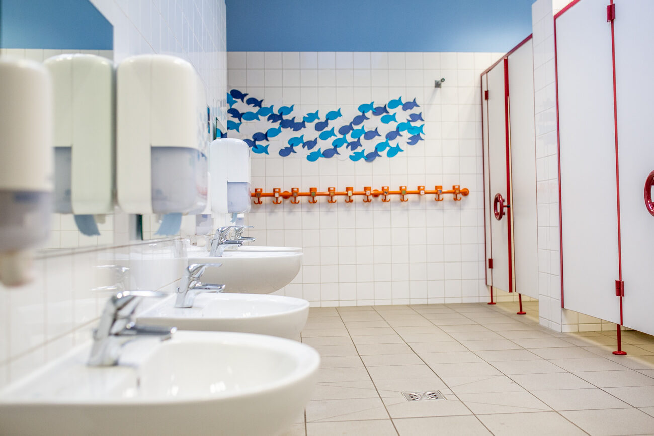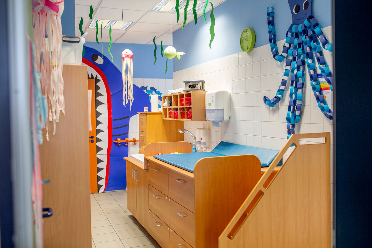 Unsere Kita liegt in einem kleinen, ländlichen Ort umgeben von Feldern und Wiesen mit verschiedenen Tieren ( Pferden, Schafen, Hühnern). Die Einrichtung ist ein moderner, farbenfroher Bau mit großen Fenstern und Bullaugen. Die Innengestaltung ist ebenfalls farbenfroh, sehr geräumig und einladend. Zu den vier Gruppenräumen gehören noch jeweils ein Nebenraum, ein Waschraum, Toiletten und ein Wickelraum. Die beiden großzügigen Eingangshallen dienen als Erlebnis- und Entdeckungshallen und laden zur Bewegung, Kommunikation und Kontaktaufnahme ein. Zudem verfügt unsere Einrichtung über einen Sprachraum und einen langen Flur, der als Bewegungsbaustelle dient und täglich genutzt werden kann. Weitere Räume sind eine große Turnhalle mit angrenzendem Materialraum , eine Küche mit zwei danebenliegenden Essräumen, ein Besprechungszimmer, ein Personalraum, ein Büro und verschiedene Räume zur Aufbewahrung von Spiel- und Bastelmaterialien und zwei Hauswirtschaftsräume.