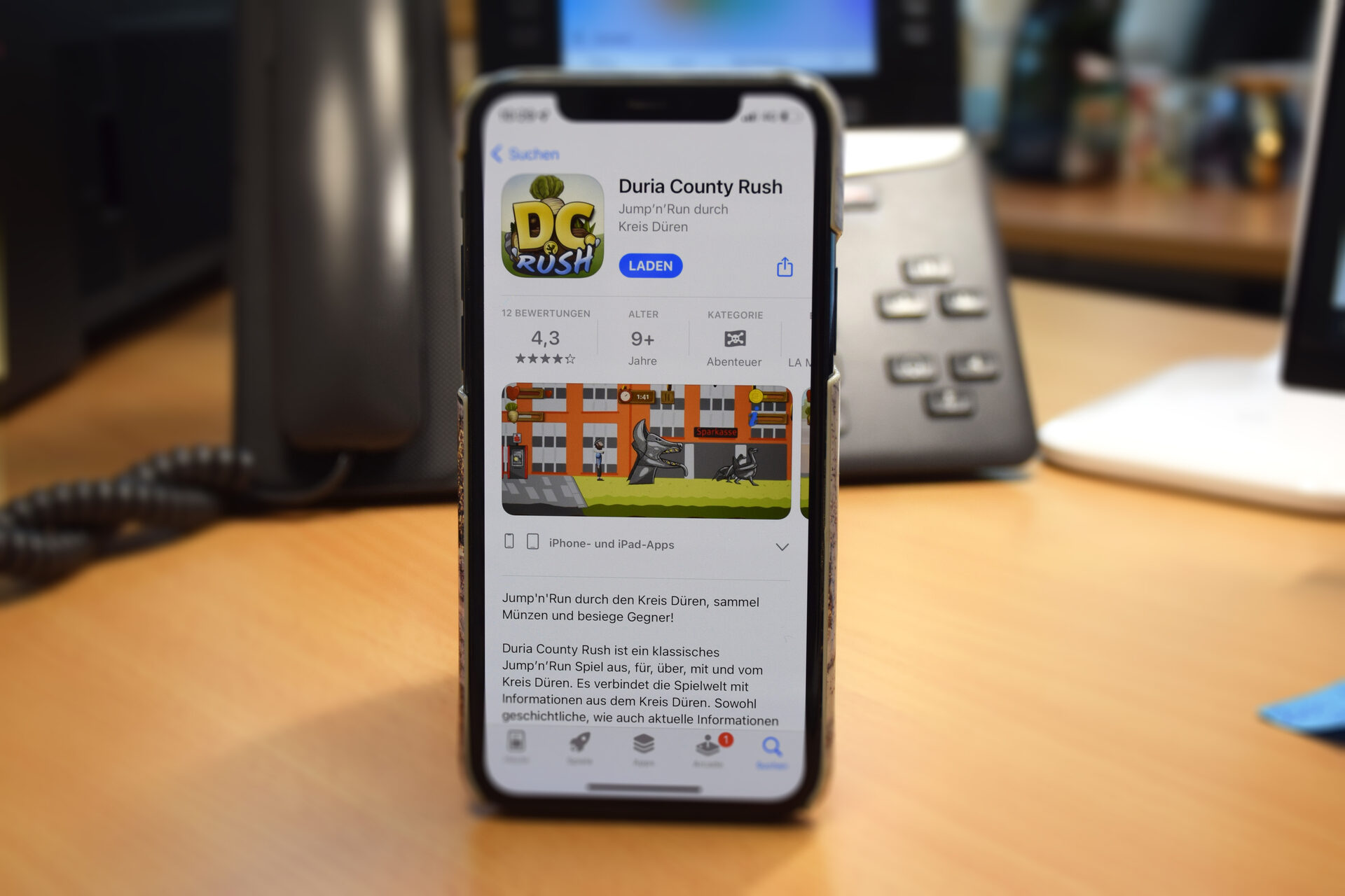 Imagespiel: Dieser Tipp ist kein klassisches Geschenk, aber ein prima Zeitvertreib für die Feiertage. Unsere App Duria County Rush ist ein Jump'n'Run-Spiel aus, für, über, mit und vom Kreis Düren. Es verbindet die Spielwelt mit Informationen aus Ihrer Heimat. Sowohl geschichtliche als auch aktuelle Informationen können Sie entdecken und das Wissen auch gleich im Spiel anwenden. Und darum geht's: Irgendwo im Kreis Düren kommen die alten Feinde des Kreises, die Untoten, wieder an die Oberfläche und rauben in Duria-City, der Hauptstadt des Kreises, die Kreiskasse aus. Nur die Helden des Spiels, die aus dem gesamten Kreisgebiet zusammengefunden haben, können jetzt noch helfen. Mit viel Mut und noch mehr Zuckerrüben machen sie sich auf, die Kreiskasse zurückzuholen… Diese Helden sind zum Beispiel Herzog Wilhelm von Jülich, eine Wissenschaftlerin aus dem Forschungszentrum und ein Naturpark-Ranger. Sie kennen sich im Kreis bestens aus, sind schnell unterwegs, sehr beweglich und geschickt, sie springen und laufen (Jump & Run), sammeln Münzen und schaffen alle Hindernisse aus dem Weg. Klingt gut? Dann schauen Sie doch mal im Appstore nach der kostenfreien App Duria County Rush. Wir wünschen gute Unterhaltung. Mehr dazu auf: www.duria-county.de (Öffnet in einem neuen Tab)