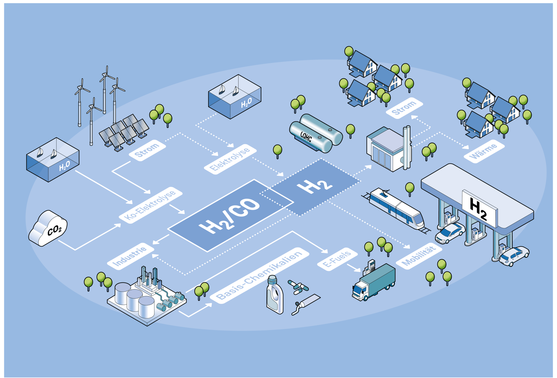 Eine zentrale Rolle in der Forschung spielt dabei die Herstellung von Wasserstoff mittels Elektrolyse. Die Wissenschaftler untersuchen, wie diese Verfahren kostengünstiger und vor allem nachhaltiger gestaltet werden können. Auch die Brennstoffzelle, die etwa den Wasserstoff in Fahrzeugen für den Antrieb verwertet, wird weiter verbessert. „Hierbei spielen die Materialien eine wichtige Rolle. Diese müssen möglichst effizient, unbedenklich und günstig sein, damit die entwickelten Lösungen marktfähig werden“, sagt Gillessen.