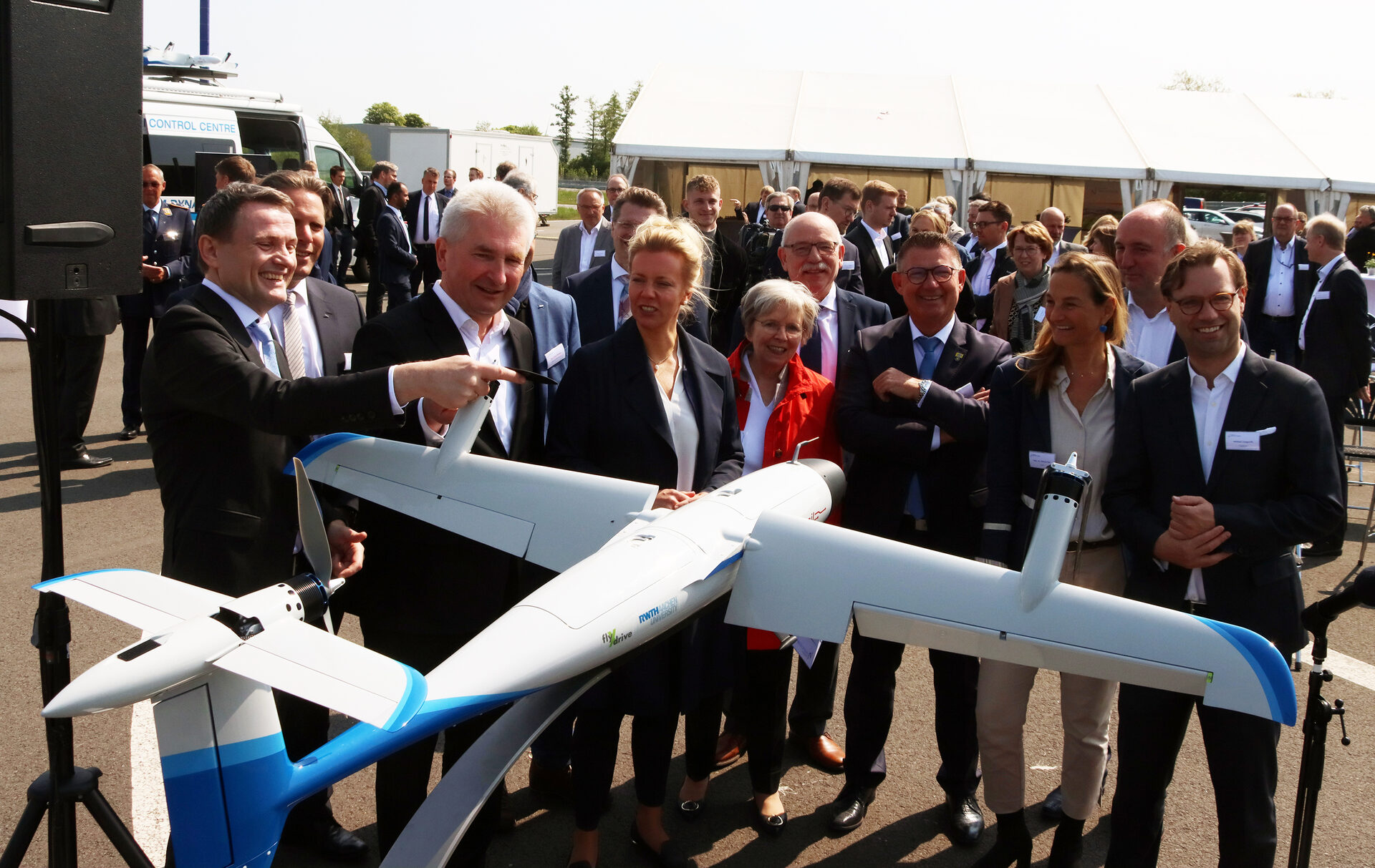 Für das Center for Vertical Mobility fiel heute der offizielle Startschuss mit NRW-Verkehrsministerin Ina Brandes und Prof. Andreas Pinkwart, NRW-Minister für Wirtschaft, Innovation, Digitales und Energie. Mit dabei natürlich auch der Rektor der RWTH Aachen, Prof. Ulrich Rüdiger, sowie weitere verantwortliche RWTH-Wissenschaftler, außerdem Peter Kaptain, Allgemeiner Vertreter beim Kreis Düren, und Ralf Claßen, Bürgermeister von Aldenhoven. Alle waren sich einig, dass das Projekt ein wichtiger Meilenstein zur positiven Entwicklung der gesamten Region sei.