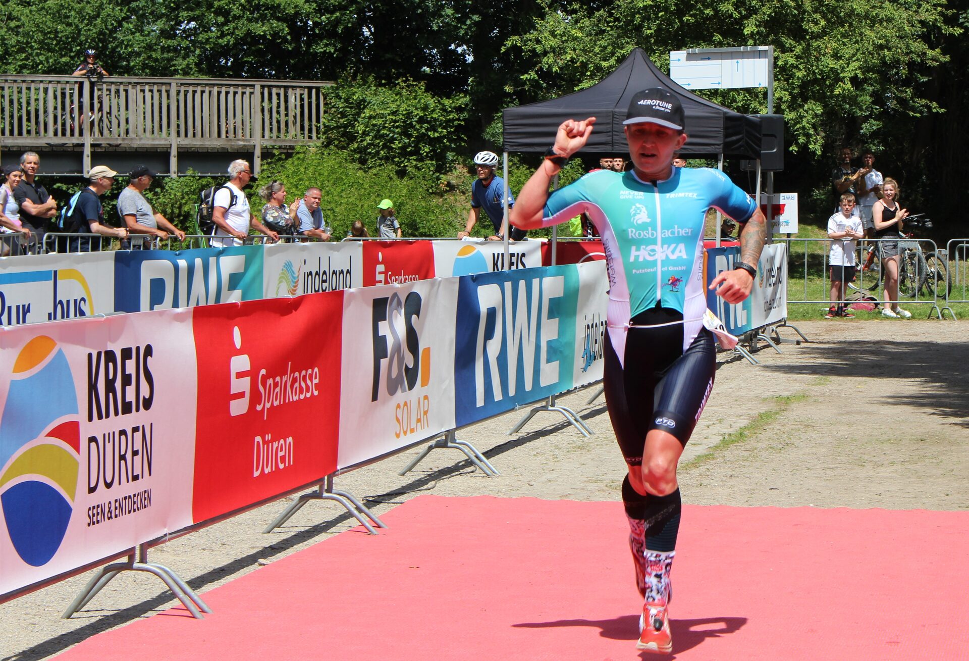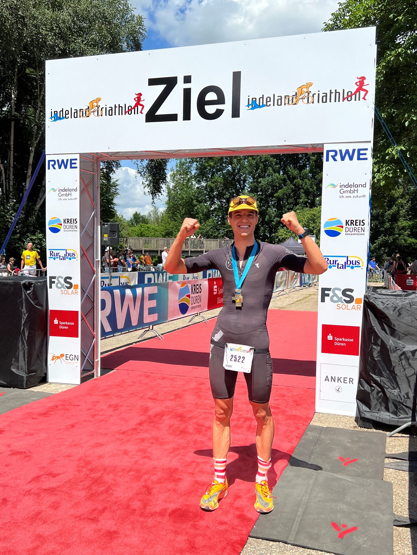 Doch der Sieg über die Königsdiziplin blieb in der Region. Sensationell konnte Niklas Löbner aus Aachen den Sieg über die Mitteldistanz (1,9 km Schwimmen, 88 km Rad, 20 km Laufen) für sich verbuchen. Der 23-Jährige, der für den DLC Aachen startet, lief nach 3:58:43 h als erster über die Ziellinie in Alsdorf und freute sich sichtlich: „Tolles Rennen, tolle Organisation und großartig, dass ich hier bei meinem Heimspiel gewinnen konnte. Die Unterstützung an der Strecke hat mich einfach ins Ziel getragen“, erzählt der Aachener Student, der das erste Mal im indeland am Start war. Auf Platz zwei liefe Jens Frommhold (Triathlon Potsdam) ein, gefolgt von Max Fischer (TriTeam Hagen).