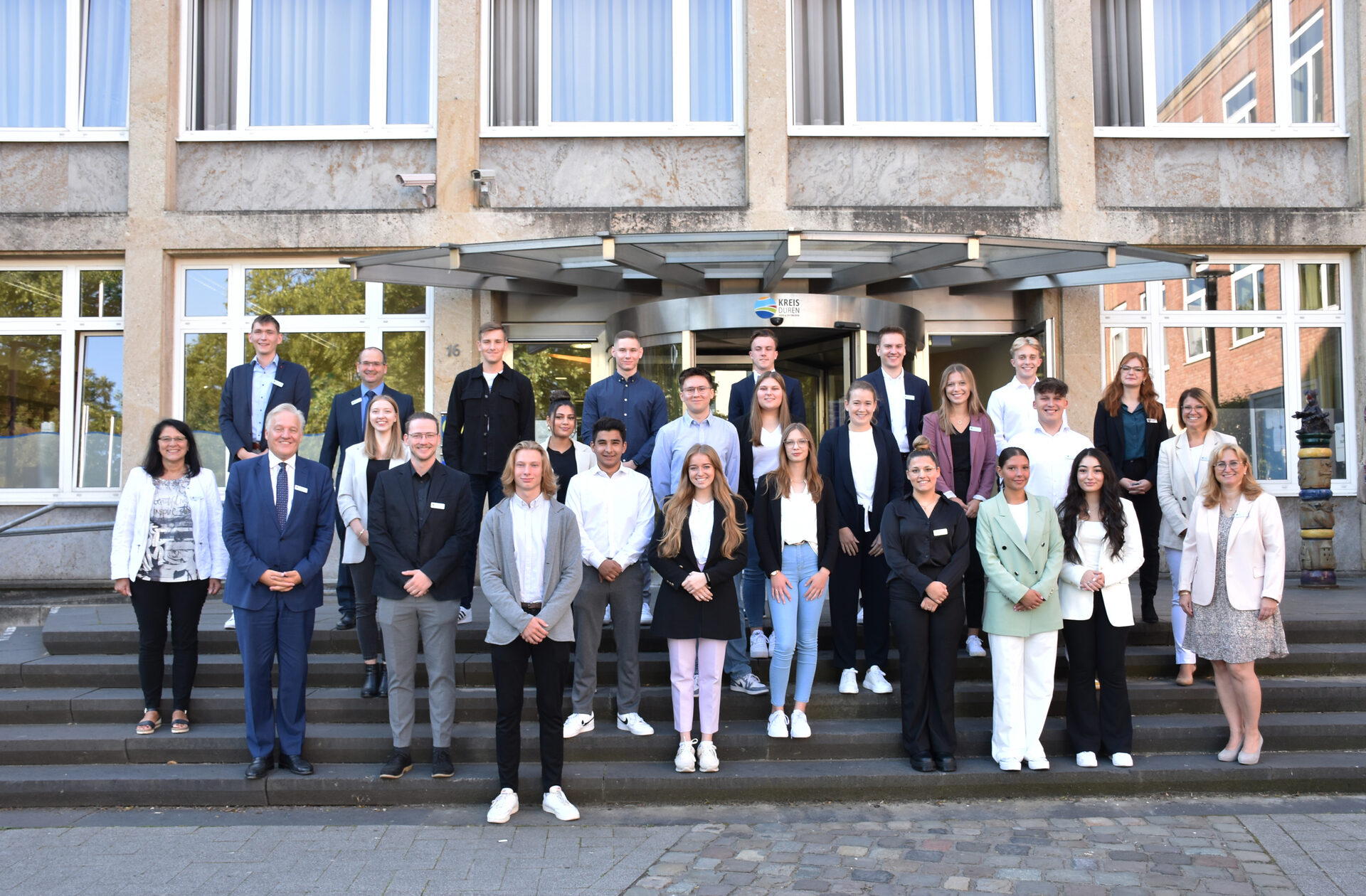 Die Monate August und September bedeuten bei der Kreisverwaltung für die jungen Menschen einen Start in einen neuen Lebensabschnitt. Unter den neuen und motivierten Mitarbeiterinnen und Mitarbeitern absolvieren einige die Ausbildung zum Verwaltungsfachangestellten oder Kreissekretär, andere beginnen das duale Studium in den Fachrichtungen allgemeine Verwaltung, Verwaltungsinformatik und Geoinformatik.