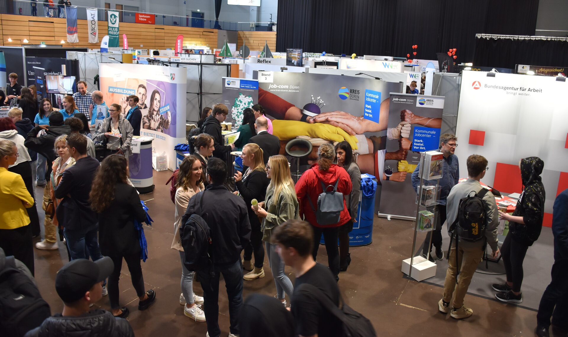 Die kostenlose Ausbildungsbörse wurde von dem Kreis Düren unter der Federführung der job-com, dem Kommunalen Jobcenter des Kreises Düren, in Zusammenarbeit mit der Agentur für Arbeit Aachen-Düren veranstaltet. In einer lockeren Atmosphäre wurden Kontakte geknüpft, die in der Vergangenheit schon häufig zu Ausbildungsverhältnissen geführt haben. Wie auch in den vergangenen Jahren wurde ein Shuttle-Bus der Rurtalbus GmbH eingesetzt, um die Schülerinnen und Schüler vom Kaiserplatz zu der Arena Kreis Düren zu fahren. Dabei war kein gewöhnlicher Bus im Einsatz, sondern einer der fünf Wasserstoff-Busse, die im Kreisgebiet die Menschen emissionsfrei transportieren.