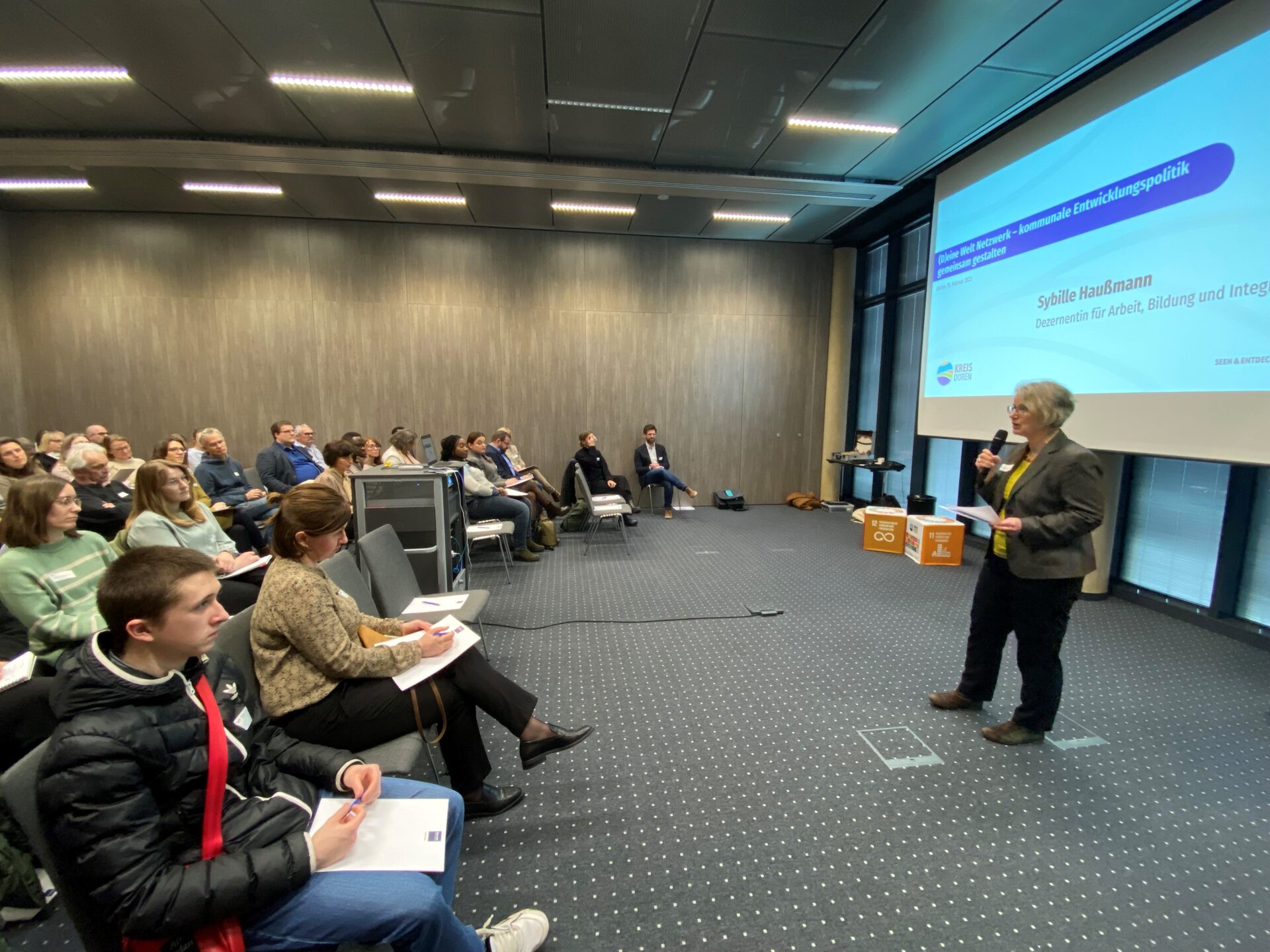 Ob Digitalisierung, Klimawandel, Bildungschancen oder auch Diskriminierung, Ungleichheit und demografischer Wandel – Themen, die die Welt beschäftigen, beschäftigen auch konkret die Menschen hier vor Ort. „Auf komplexe globale Fragen können wir nur gemeinsam Antworten finden. Daher ist es wichtig, dass wir Zeit, unterschiedliche Perspektiven und Kompetenzen einbringen, um ein Netzwerk zu bilden und Lösungsansätze zu finden“, sagte Sybille Haußmann, Dezernentin für Bildung, Integration und Arbeit zu Beginn der Auftaktveranstaltung.