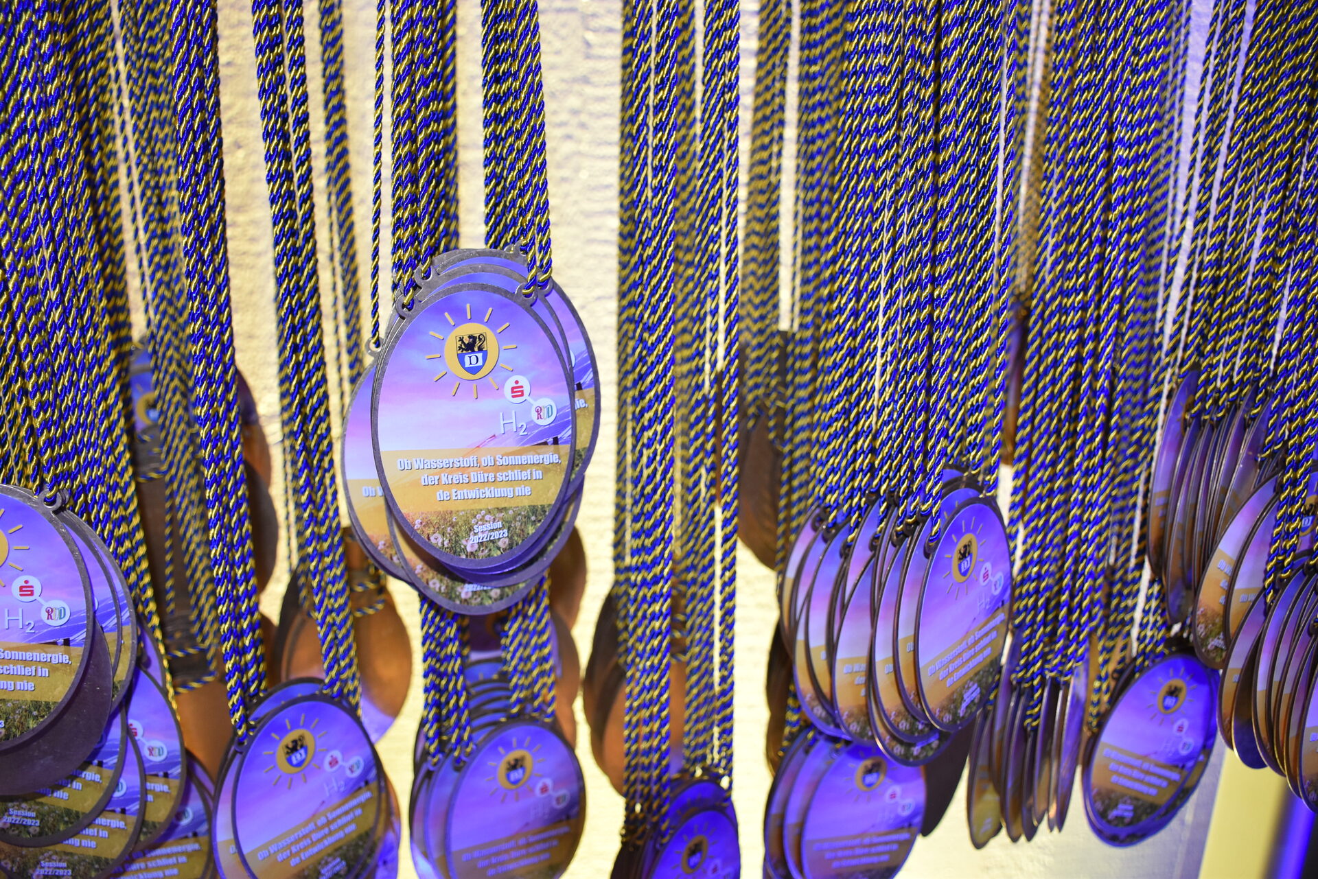 Thomas Kroth führte als Moderator durch den Abend, der wieder von der Sparkasse Düren unterstützt wurde, und Gerd Funk untermalte die ausgelassene Stimmung als musikalischer Begleiter. Lea Schlossmacher von den Karnevals- und Bühnenfreunden Girbelsrath hat als erste das Mariechen-Tanzbein geschwungen und die Bühne mit Spagat, Radschlag und Co. eröffnet. Insgesamt sind über 60 Karnevalsgesellschaften zusammen gekommen, um gemeinsam die Karnevalszeit zu genießen. Zunächst wurden die Kindertollitäten vorgestellt und – natürlich – die wunderbar bunten Orden ausgetauscht. Auch der Kreis Düren hat in dieser Session wieder einen Orden, der von Familie Herpertz (Herpertz Präzision, Werkzeugbau) bereitgestellt wurde. Auf ihm steht: "Ob Wasserstoff, ob Sonnenergie, der Kreis Düre schlief in de Entwicklung nie".