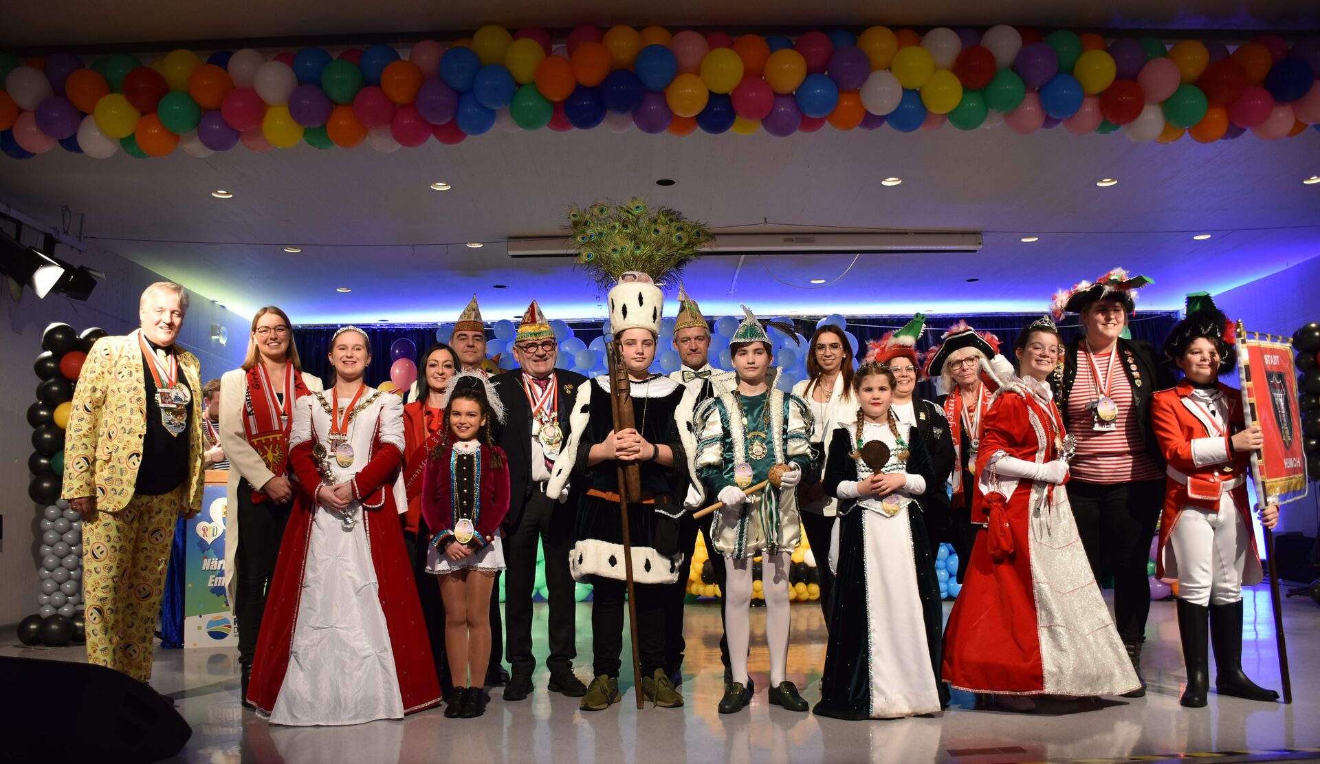Nachdem Luisa Moeller der KG Boisdorfer Jecke mit einem strahlenden Lächeln ihre Pirouetten auf der Bühne gedreht hatte, wurden die Erwachsenentollitäten begrüßt. Vier Prinzessinnen, sechs Prinzen, sechs Prinzenpaare und 12 Dreigestirne erstrahlten in vollem Glanz. Für zusätzliche Karnevalsstimmung sorgten die Frauenband DURIA EXPRESS, die Showtanzgruppe LA DANZA des KV Vlattener Jonge und die Mundartband "Echte Fründe".