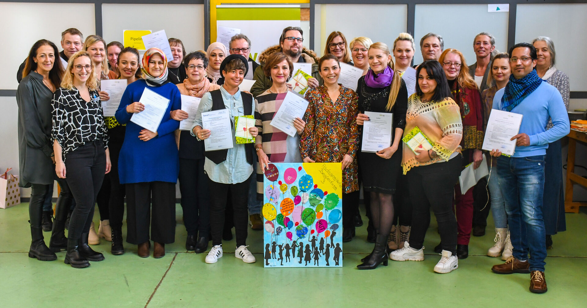 Rund zwei Drittel der Teilnehmerinnen und Teilnehmer haben direkt im Anschluss schon eine Arbeitsstelle fest in Aussicht. Mit dem Zertifikat in der Tasche warten nun zwei mögliche Betätigungsfelder auf die 18 Damen und vier Herren: die Schulbegleitung und Betreuung von Kindern und Jugendlichen mit Einschränkungen oder die Betreuung in Offenen Ganztagsschulen (OGS). „Einige von Ihnen wollen und werden sich noch weiterqualifizieren, zum Beispiel über die praxisintegrierte Ausbildung zur Kinderpflegerin (PIA)“, zeigte Melanie Hinzen eine weitere Option auf.