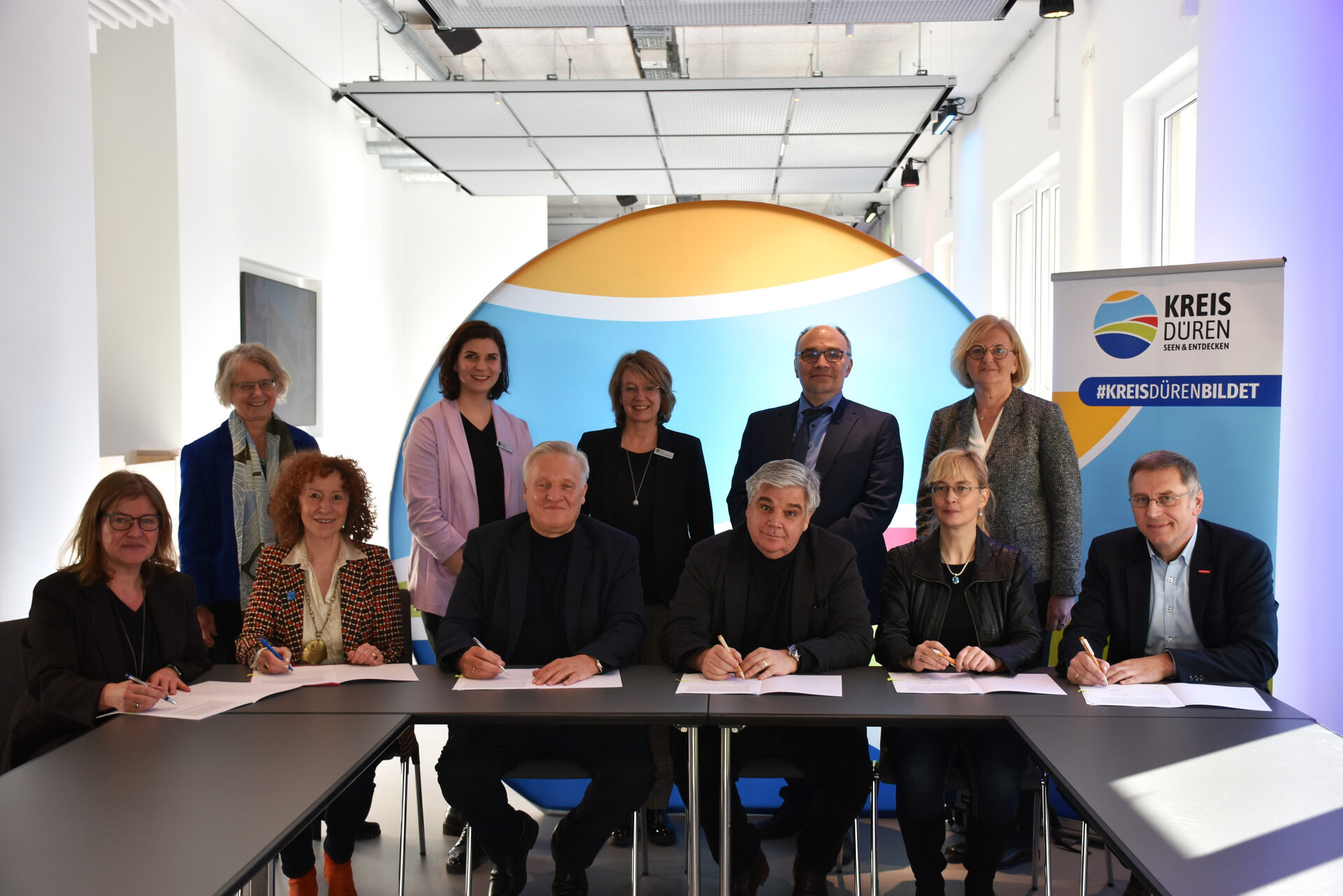 Landrat Wolfgang Spelthahn unterzeichnete gemeinsam mit den Vertreterinnen und Vertretern der job-com, der Schulaufsicht, der Agentur für Arbeit Aachen-Düren, der Handwerkskammer Aachen (HWK) und der Industrie- und Handelskammer Aachen (IHK) eine Vereinbarung, die die Zusammenarbeit, die Abläufe und Strukturen stärkt. Sie tritt am Mittwoch, 1. Februar, in Kraft.