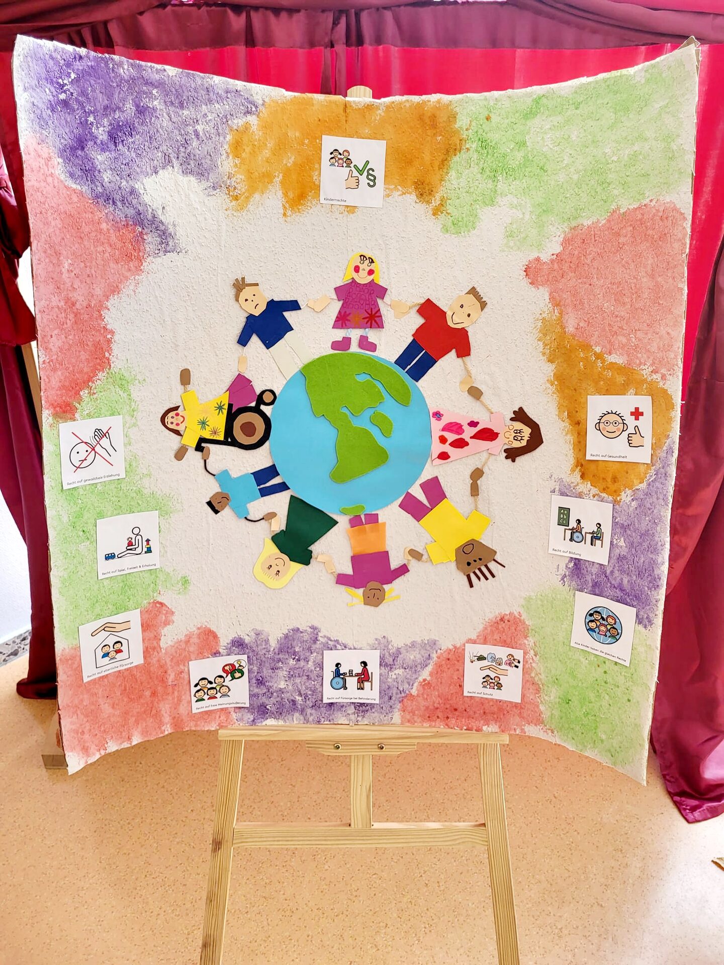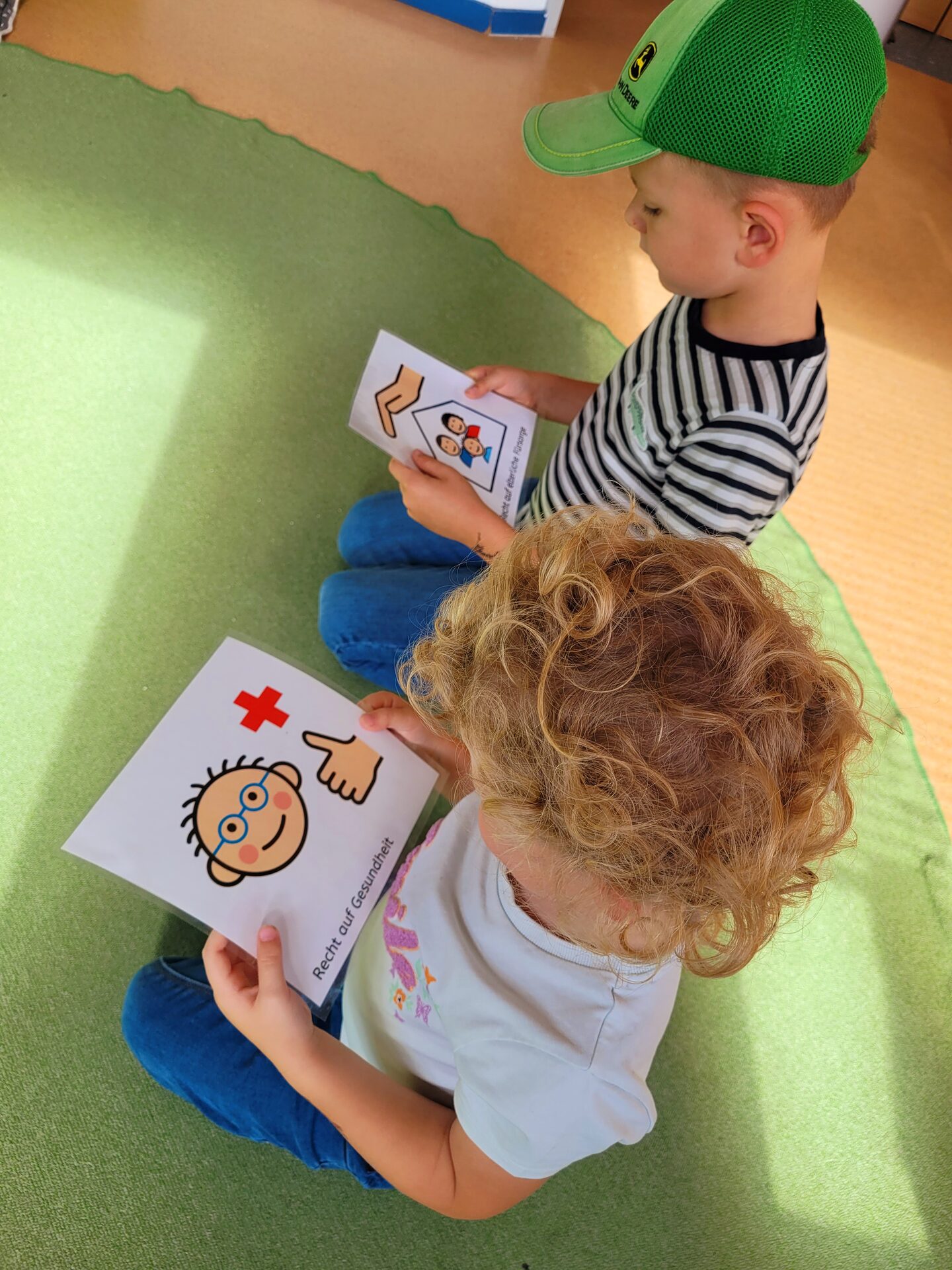 Mithilfe von Symbol-Bildern können sich die Kinder genaueres unter den einzelnen Rechtsbegriffen vorstellen. So bringt Jakob ein, dass Kinder vor Krieg geschützt werden müssen. "Kein Kind darf geschlagen werden", meint Lilly. "Nicht von Erwachsenen und auch nicht von anderen Kindern", ergänzt Pascal und hält dabei das passende Bildchen in die Runde. "Es ist gut, dass es den Weltkindertag gibt", stellt Laura fest. Anlässlich des Weltkindertags wollen die Kinder gemeinsam mit einem selbst gestalteten Plakat auf die Kinderrechte aufmerksam machen. "Das diesjährige Motto des Weltkindertages lautet 'Jedes Kind braucht eine Zukunft' und genau das wird im Kreis Düren gelebt. Wir setzen uns mit Angeboten, geschultem Personal in den Einrichtungen, Beratungen und Veranstaltungen stark für Kinderschutz, Kinderrechte und Akzeptanz ein. Alle Kinder haben das Recht, gehört und ernstgenommen zu werden", betont Landrat Wolfgang Spelthahn. Im Kreis Düren gibt es viele Betreuungsangebote für Kleinkinder. Die allermeisten Eltern zahlen keine Kita-Gebühren. Ab dem ersten Lebensjahr haben die Kinder einen Rechtsanspruch auf einen Kita-Platz.