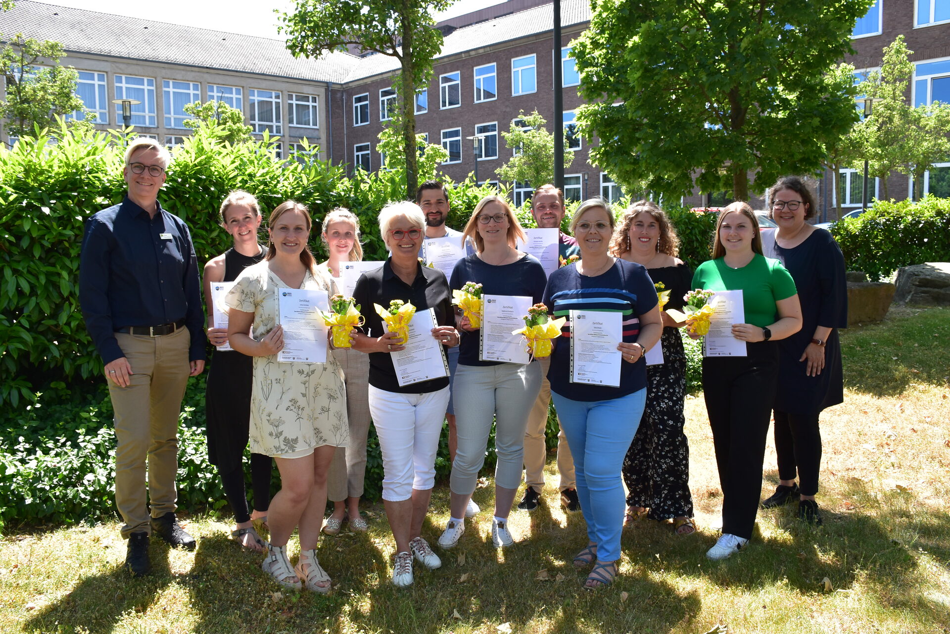 Zehn der pädagogischen Fachkräfte erhielten nun bei der Abschlussveranstaltung im Kreishaus ein Zertifikat, das ihnen von der Leitung des Kommunalen Integrationszentrums (KI), Claudia Berschbach, feierlich überreicht wurde. Dafür war die Teilnahme an mindestens sechs von sieben Seminartagen, eine schriftliche Ausarbeitung und eine individuelle Präsentation notwendig. "Der Tag, an dem die Teilnehmenden ihre Praxisprojekte vorstellen, ist für mich immer besonders interessant. Dann erfahren wir, wie die Inhalte der Fortbildungsreihe vor Ort praktisch umgesetzt werden und die Teilnehmenden erhalten Inspirationen für ihren eigenen Kita-Alltag", freut sich Antje Bruckschen, Mitarbeiterin des Kommunalen Integrationszentrums und Organisatorin der Fortbildungsreihe.