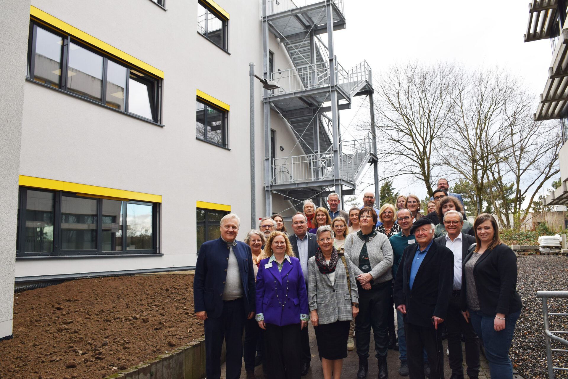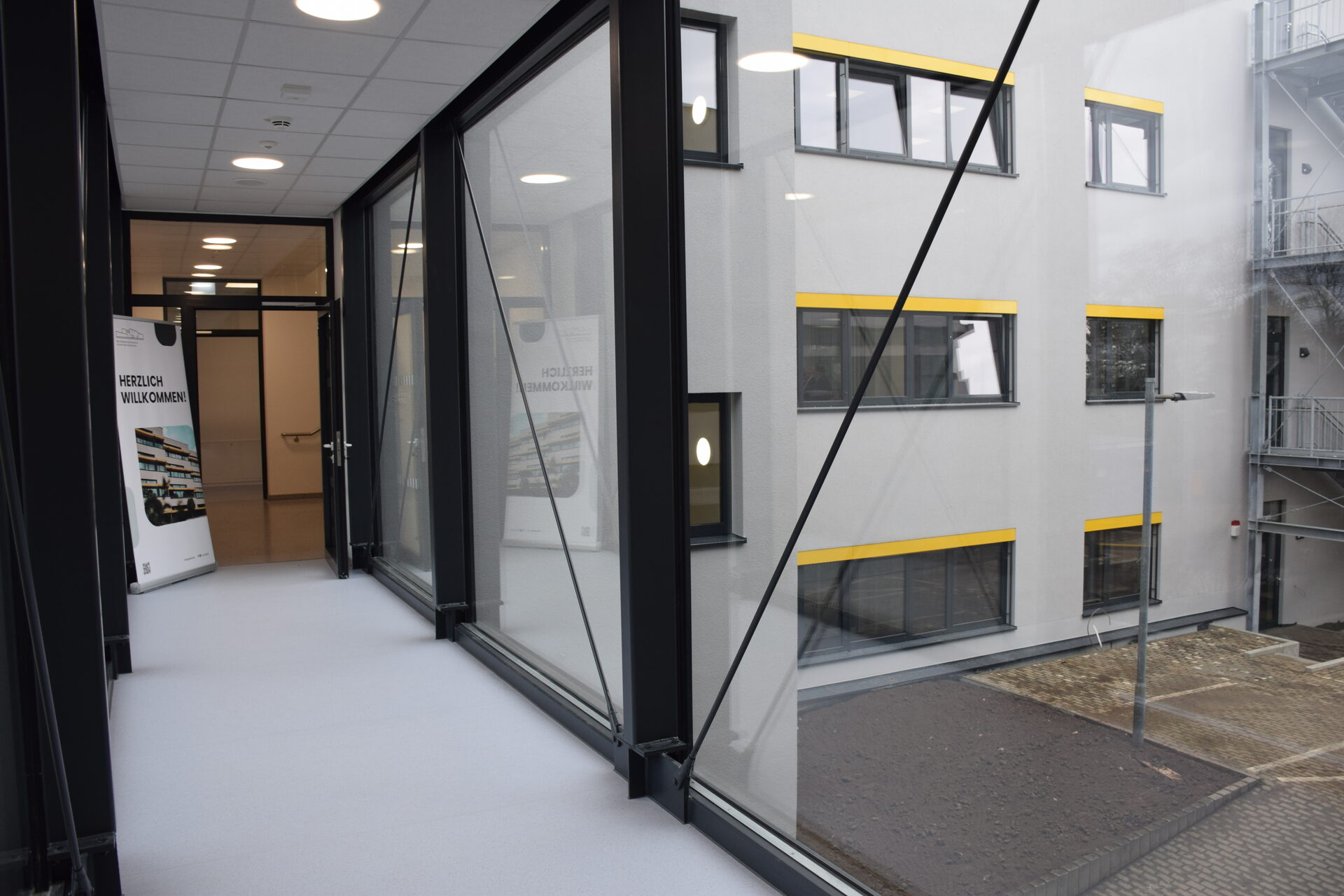 "Schule ist mehr als Lehrraum, er ist Lebensraum. Das spiegelt sich im Neubau wider", sagte die schulfachliche Dezernentin der Bezirksregierung Köln per Videobotschaft, bevor sich die Gäste bei einem Rundgang durch das neue Gebäude selbst ein Bild machen konnten. Große Glastrennwände erlauben eine helle und offene Lernlandschaft. Die Räume sind mit modernen, digitalen Tafeln ausgestattet. Alt und Neu werden durch eine Glasbrücke verbunden, die die Zusammengehörigkeit des Schulgebäudes versinnbildlicht. Auch die Außenfassade ist gestalterisch an das bestehende Gebäude angelehnt.